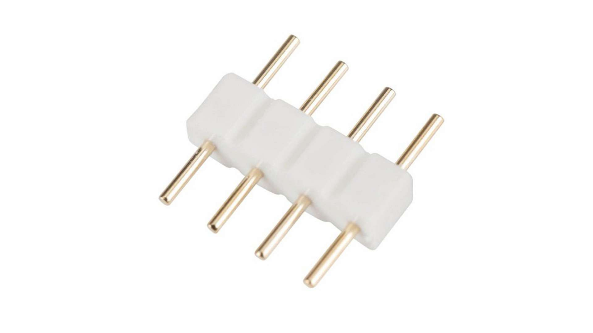 Zástrčka pro samce, oboustranná pro RGB pásky. Umožňuje vám připojit LED pásky bez pájení. Pro připojení ke kontroléru nebo 2 pásek, které mají vstup pro samici.