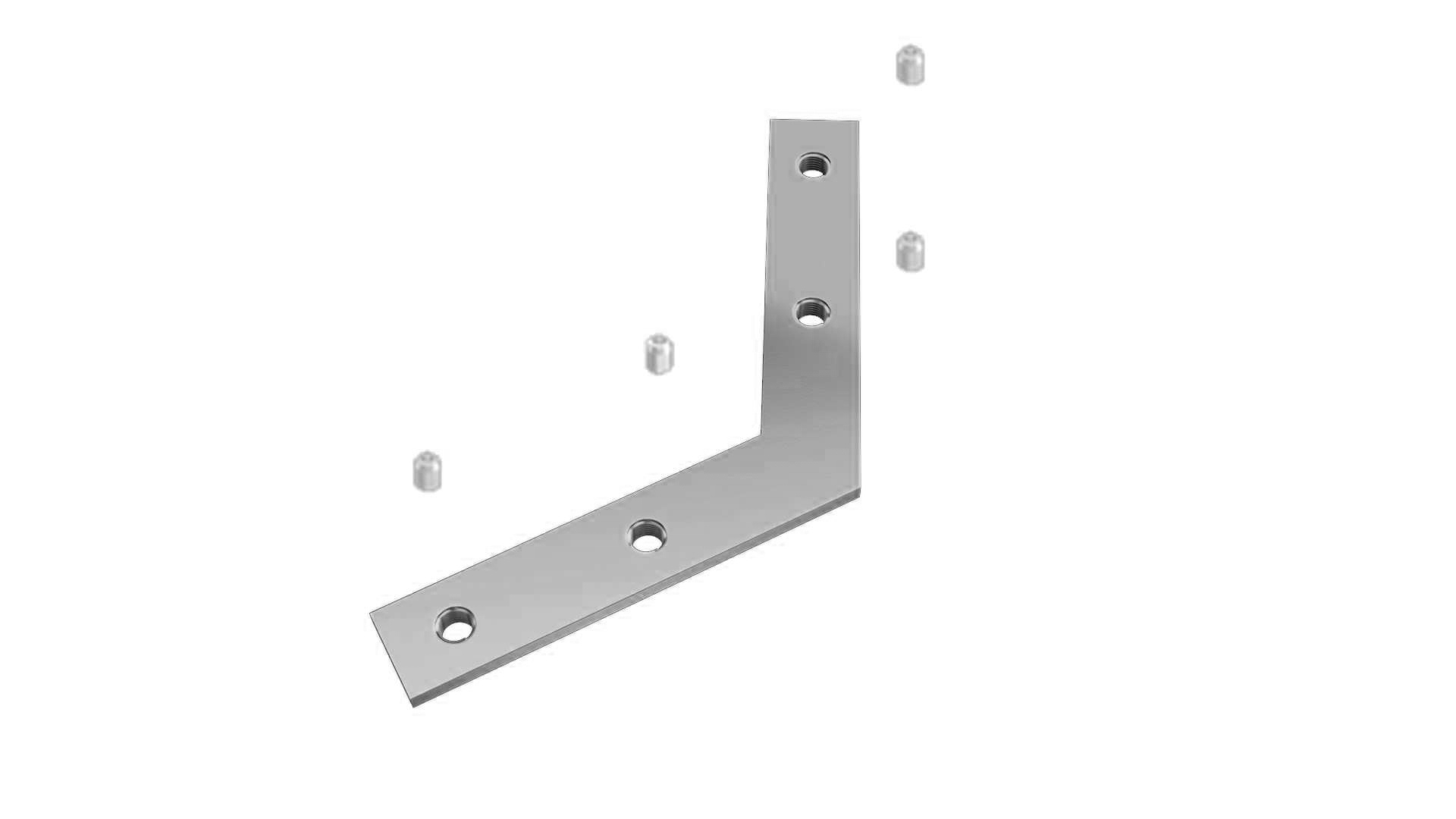 Úhlový konektor pro profily Lumines. Jeho účelem je posílení tuhosti konstrukce a usnadnění instalace dvou sekcí profilů řezaných v úhlu.