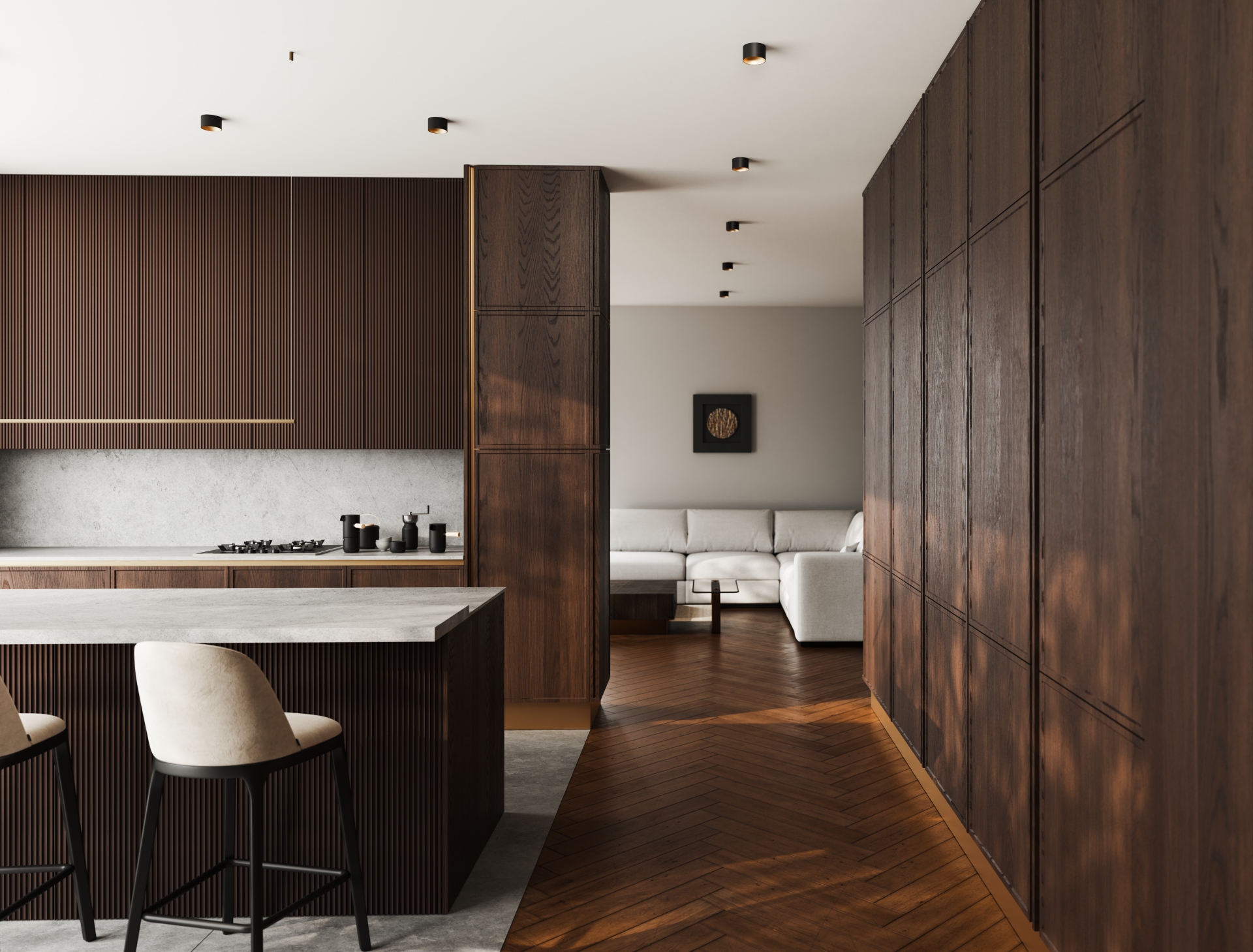 Architect's advice: Some projects require special solutions. This is what the CASA ceiling fixture was created for! The fixture has a replaceable reflector, which is available in gold.It is worth paying attention to the fact that the light source is embedded deep in the fixture. This reduces the glare effect in the case of looking directly at the light source