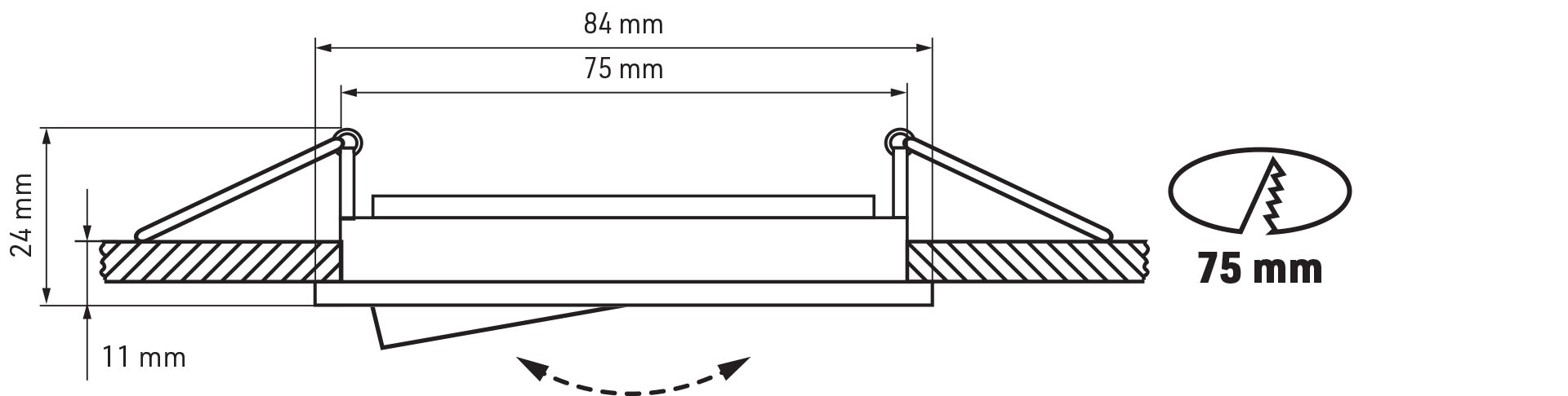 Svítidlo umožňuje nastavení úhlu dopadu světla. Umožňuje jemné osvětlení míst, kam hlavní světlo dosahuje pouze omezeně, jako jsou prostory pod skříňkami.