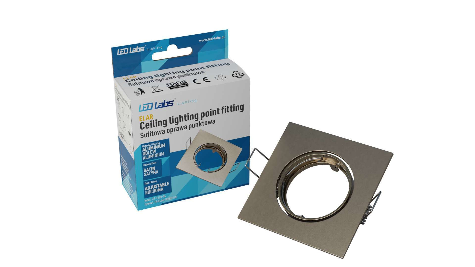 Zapuštěné stropní světlo ELAR čtvercové, nastavitelné, saténový chrom, hliníkový tlakový odlitek