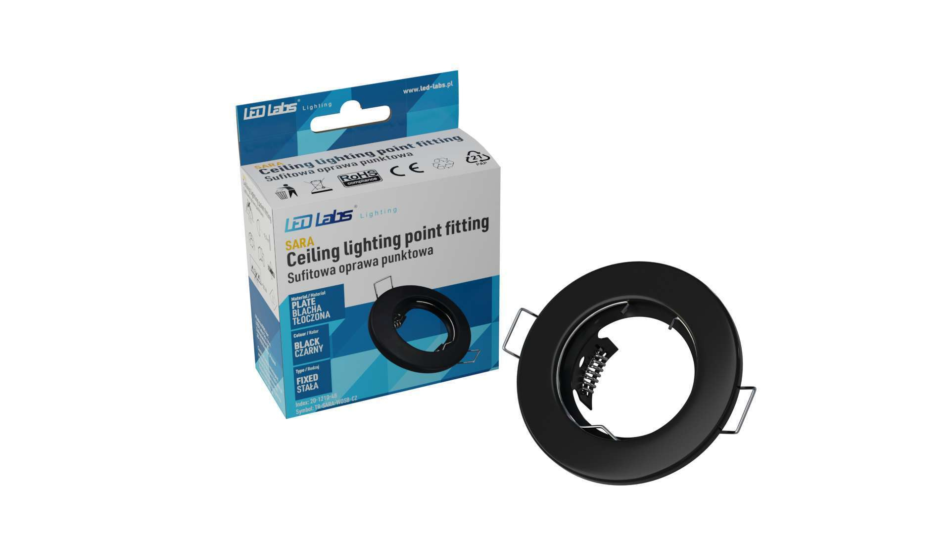 Stropní svítidlo vyrobené z ocelového plechu, kulaté, černé.