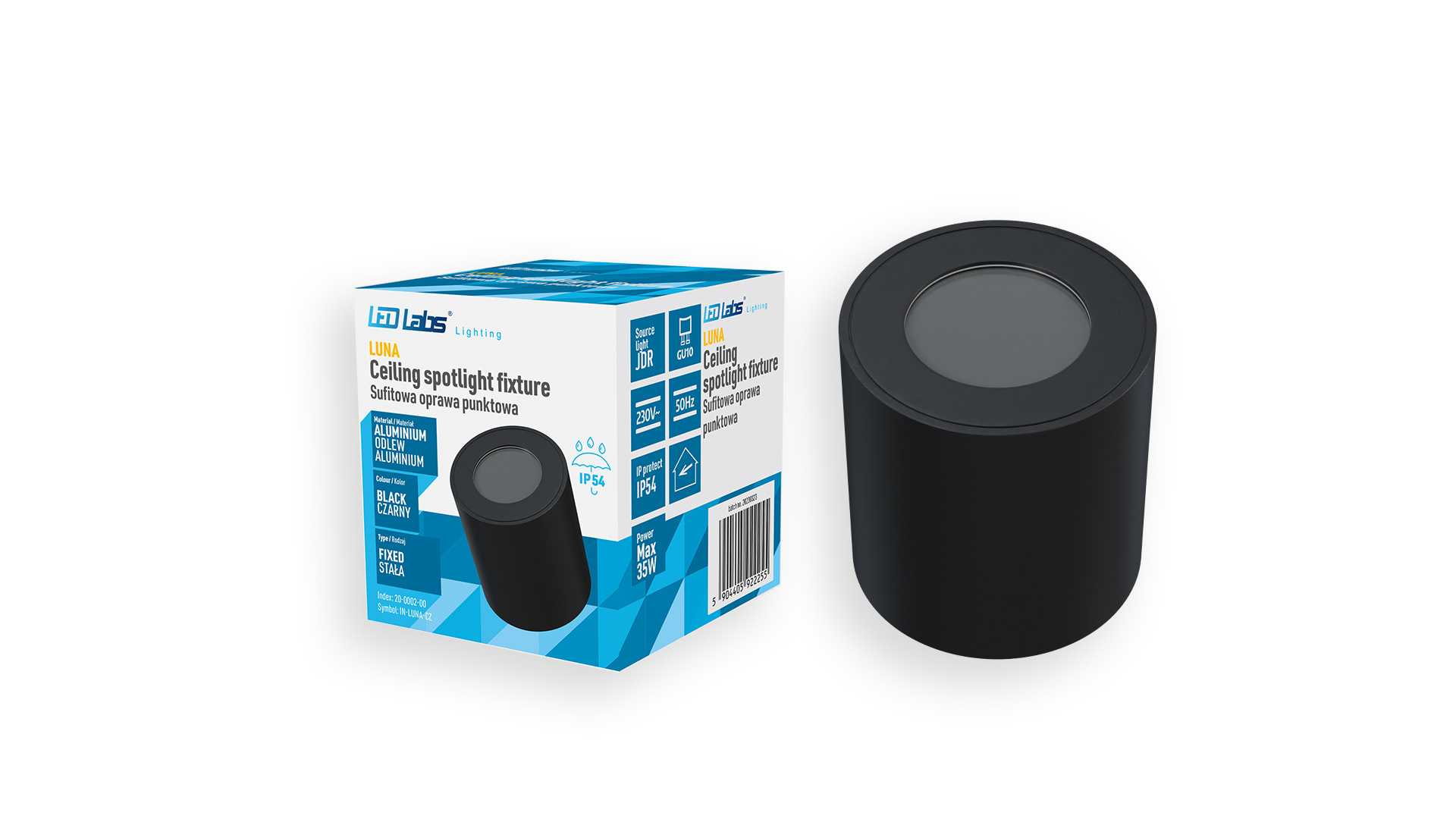 Popis Stropní bodové svítidlo SPOT LUNA kruhové, pevně instalované, černé