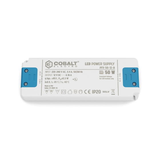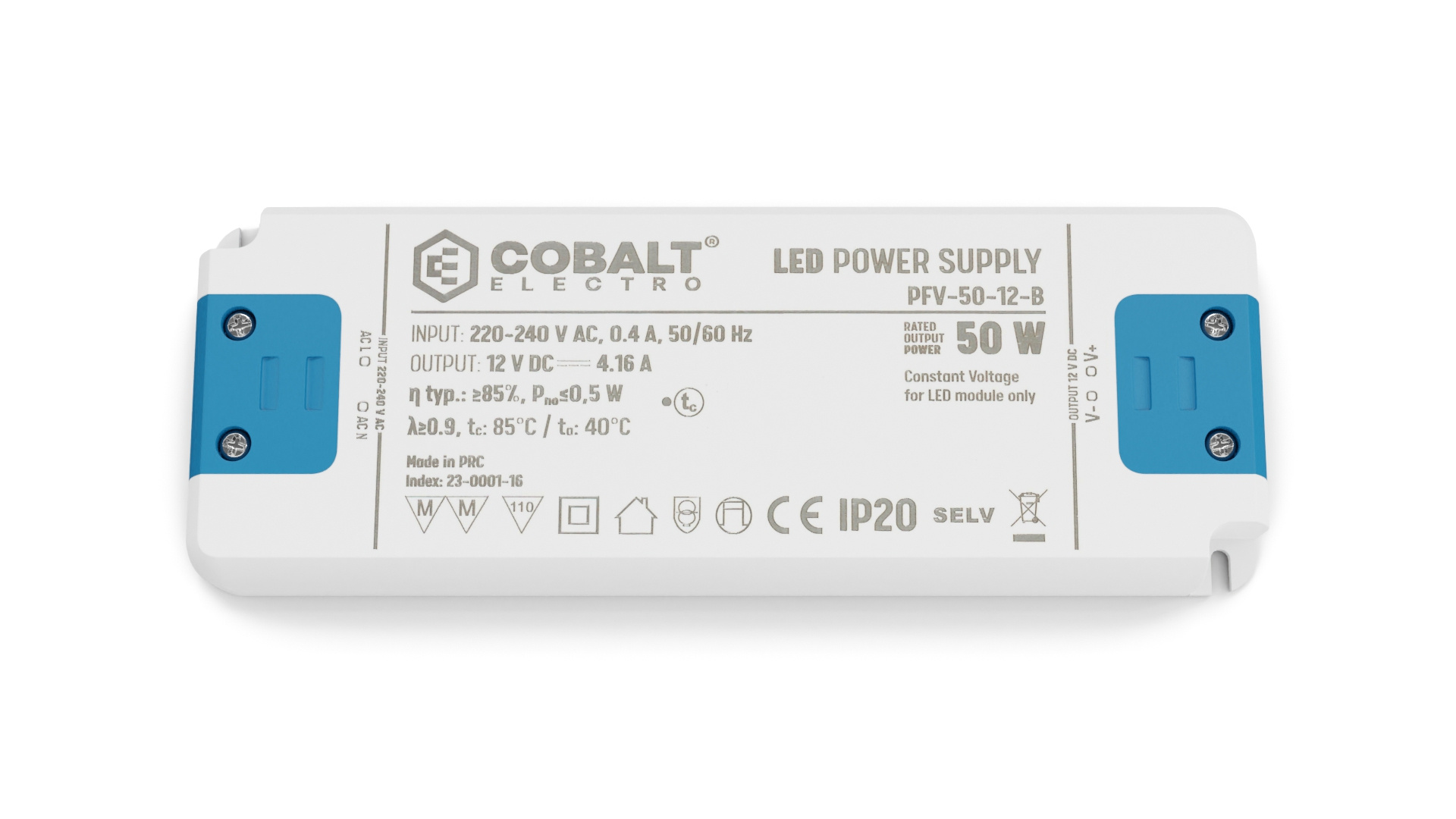 Jednotky napájení Cobalt Electro splňují mezinárodní standardy pro osvětlení a mají ochranu proti zkratu, nadproudu, přepětí a přehřátí.