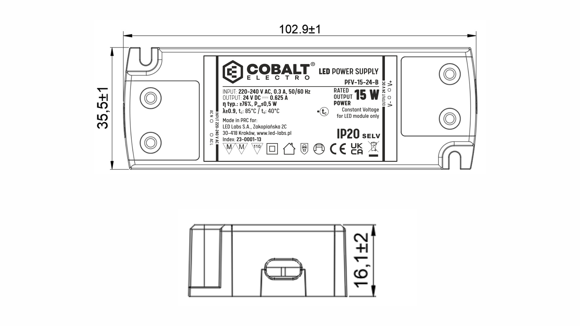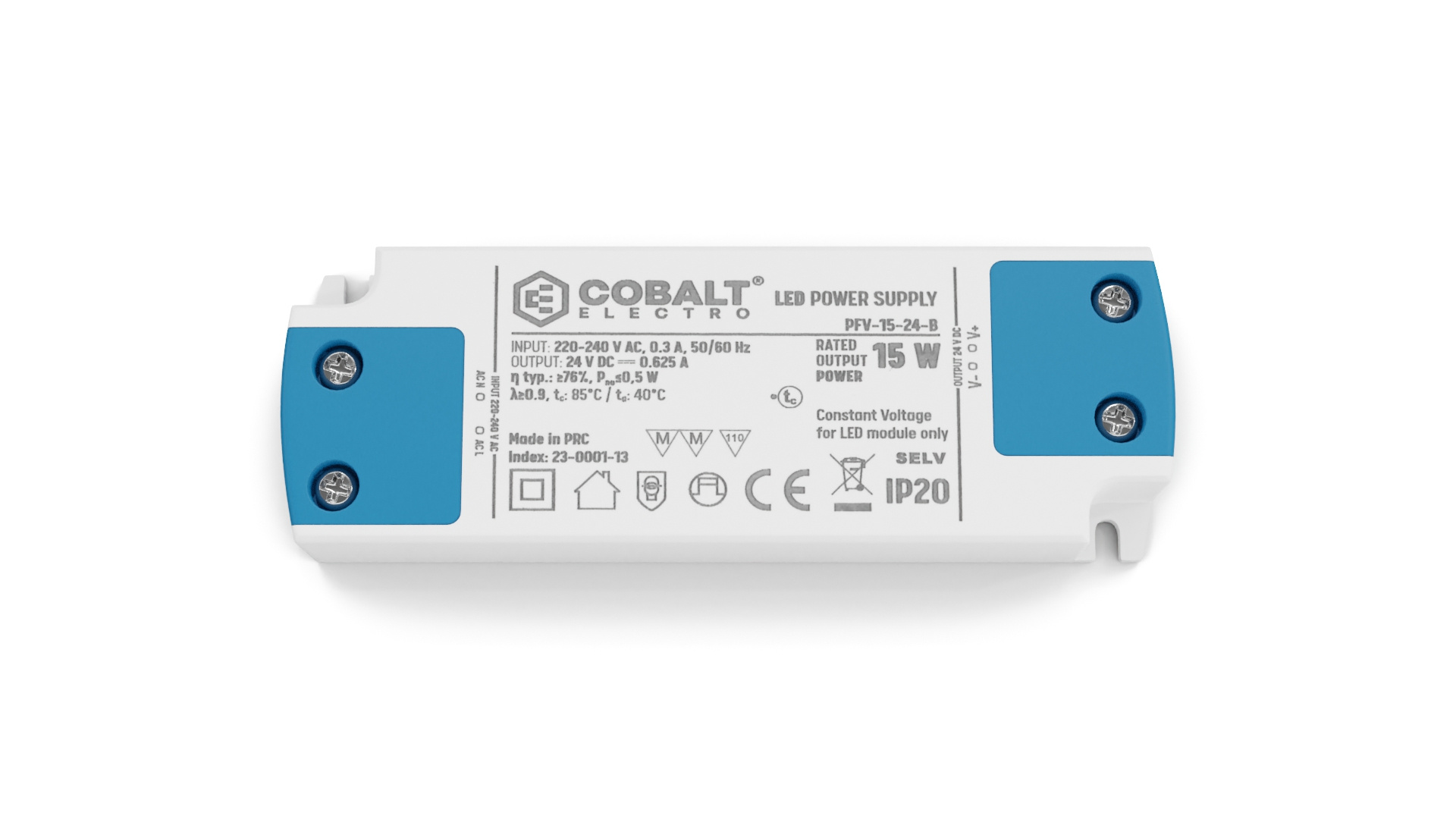 Napájecí jednotky Cobalt Electro splňují mezinárodní standardy osvětlení a mají ochranu proti zkratu, nadproudu, přepětí a tepelnou ochranu.