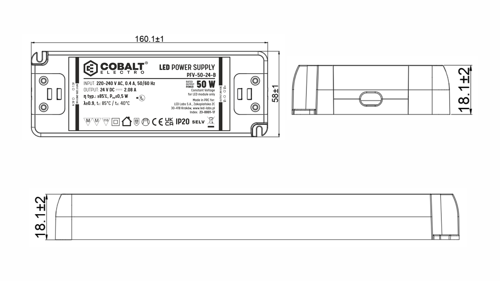 Napájecí jednotky Cobalt Electro splňují mezinárodní standardy pro osvětlení a mají ochranu proti zkratu, nadproudu, přepětí a teplotě.