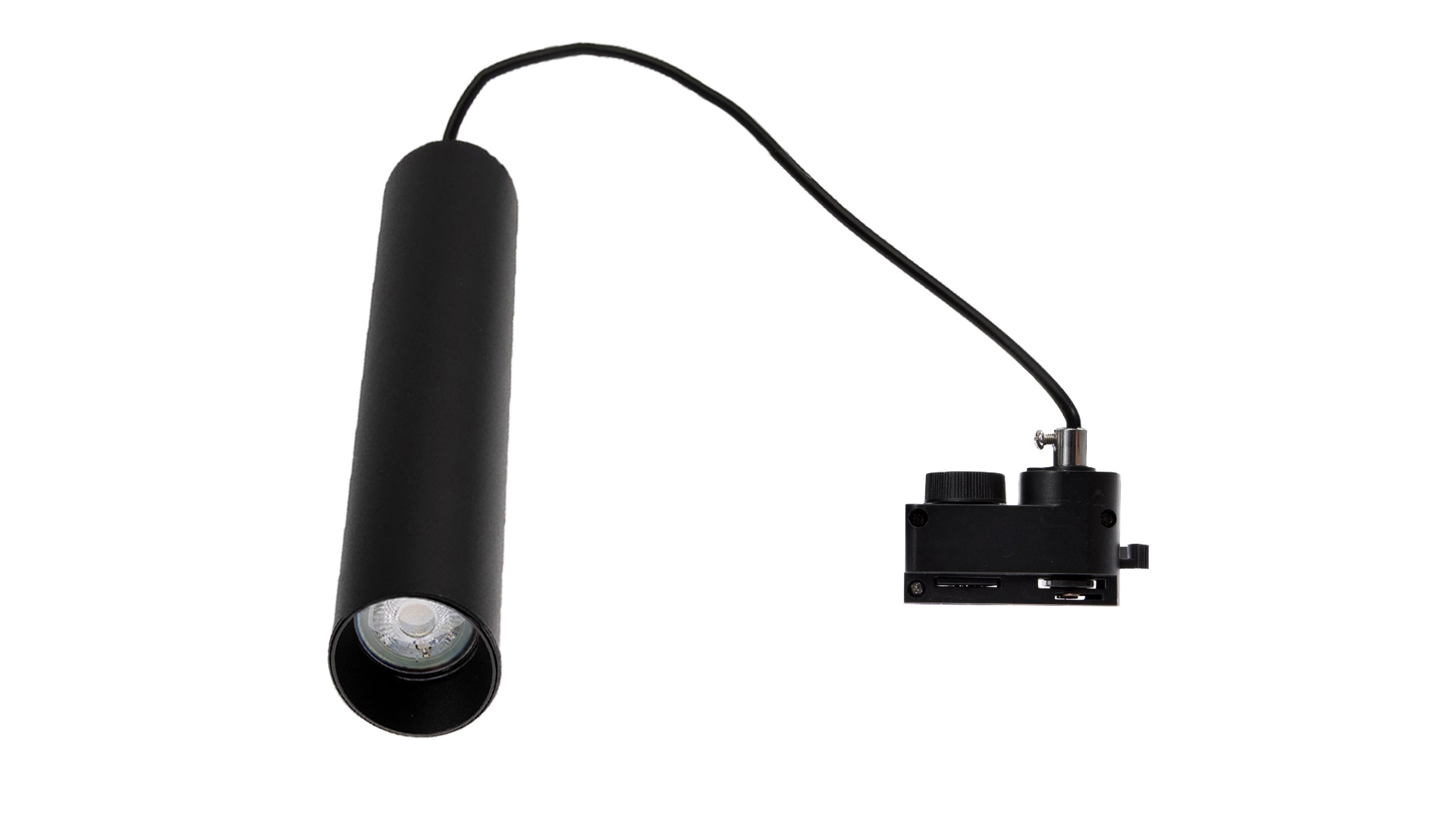 VISÍCÍ bydlení. Upevněno na dedikovanou napájecí lištu. Umožňuje velkou svobodu umístění v prostoru na upevňovací lince lišty. Žárovka GU10 LED a napájecí lišta nejsou součástí svítidla. Je možné vyměnit žárovku.