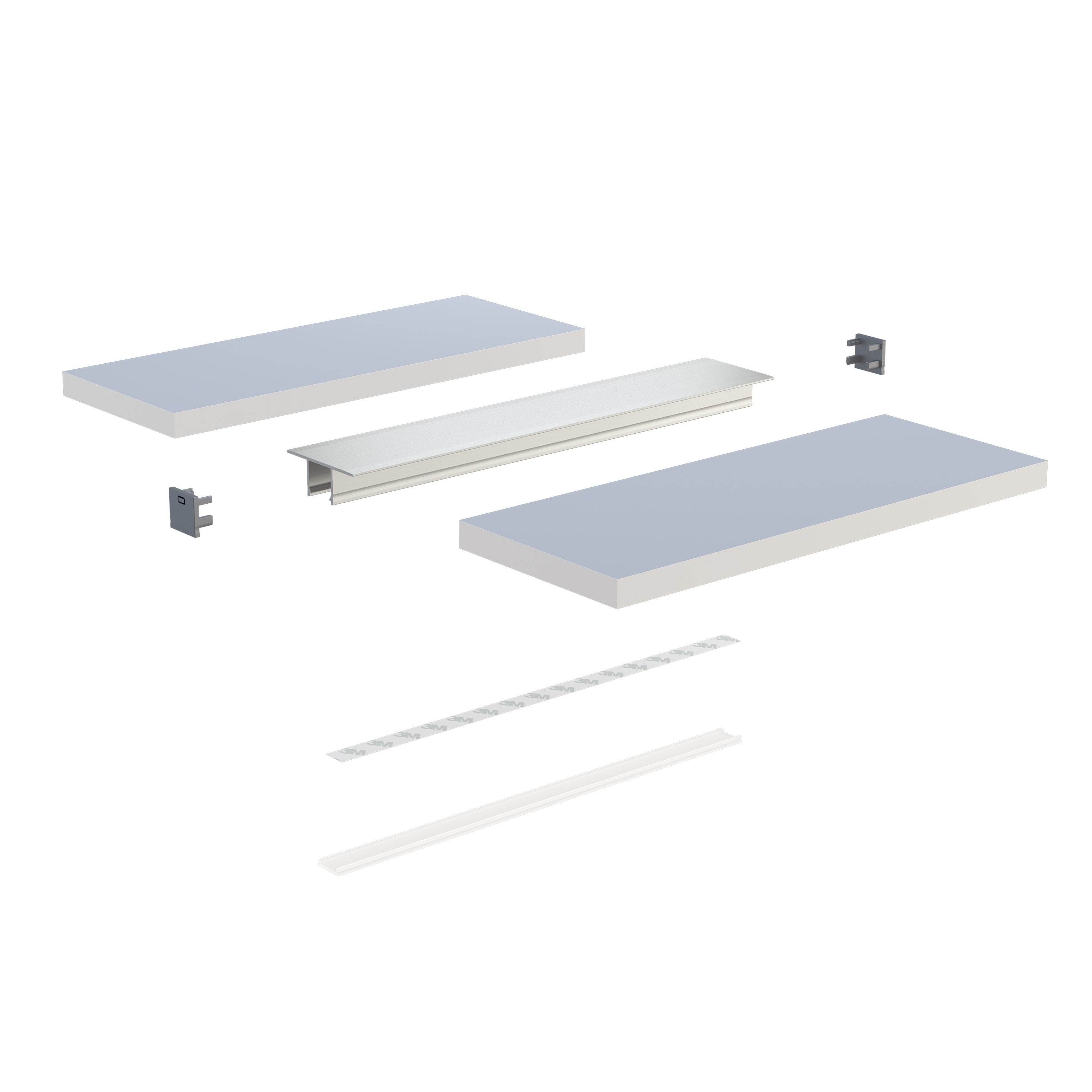 Schéma montáže prvků světelného systému s využitím profilu FALCO a (1) BASIC kryt, (2) LED pásek, (3) koncové kryty