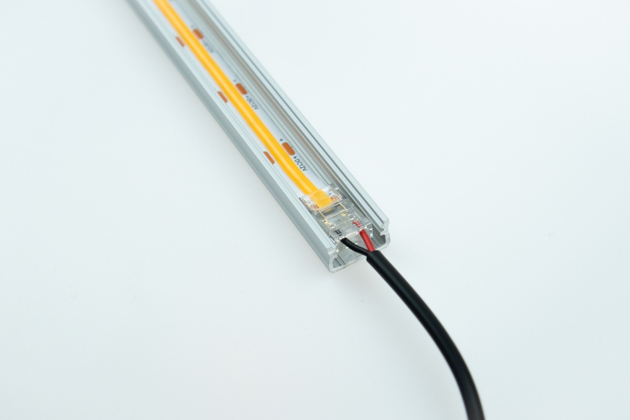 Velikost konektoru umožňuje jeho vložení do profilu, což zajišťuje estetickou instalaci LED pásků.