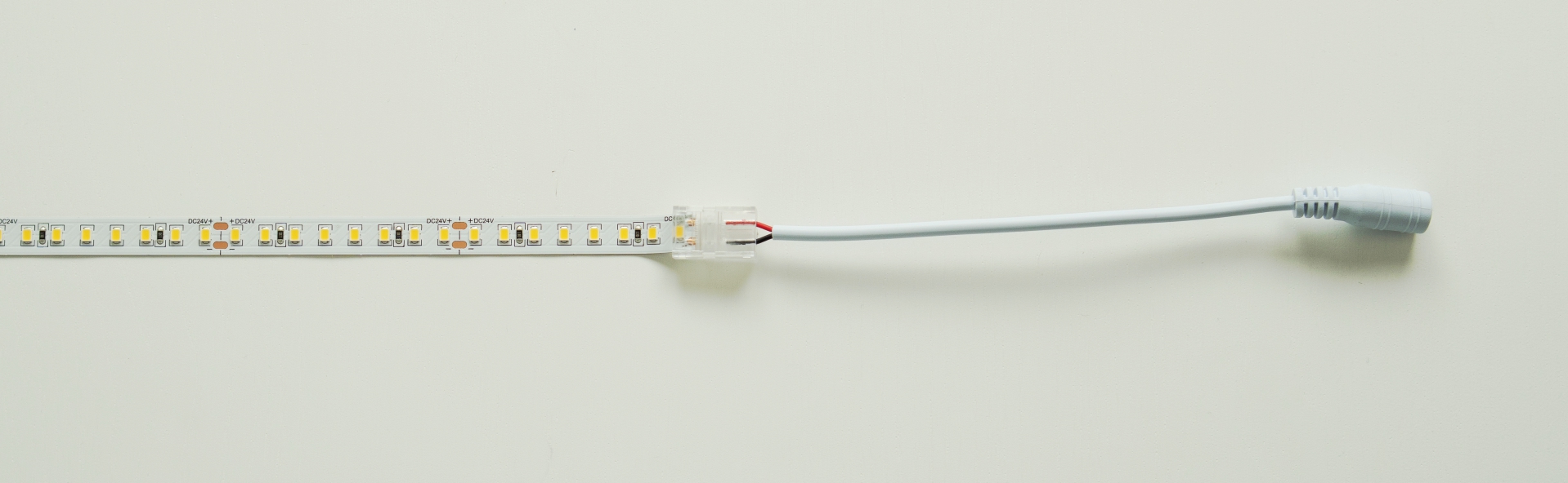 Velikost konektoru umožňuje jeho zasunutí do profilu, čímž zajišťuje estetickou instalaci LED pásků.