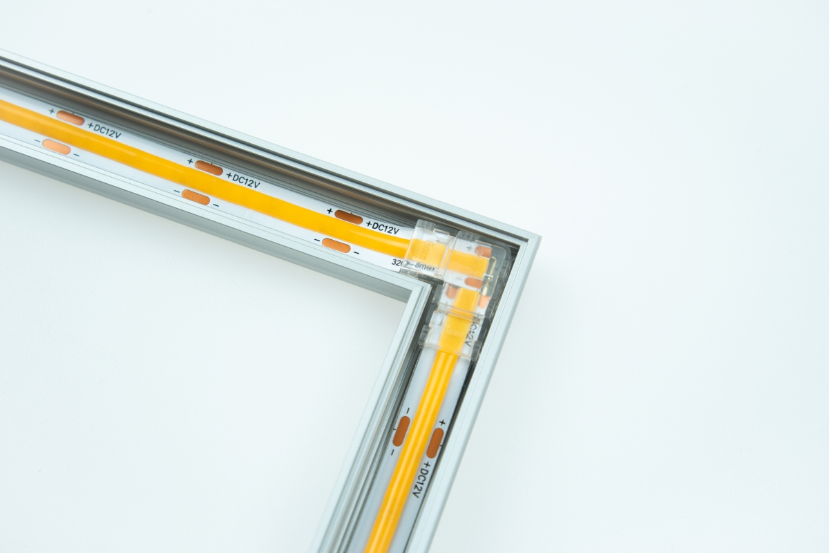 Úhlový konektor umožňuje připojit dvě části LED pásku v úhlu 90 stupňů.