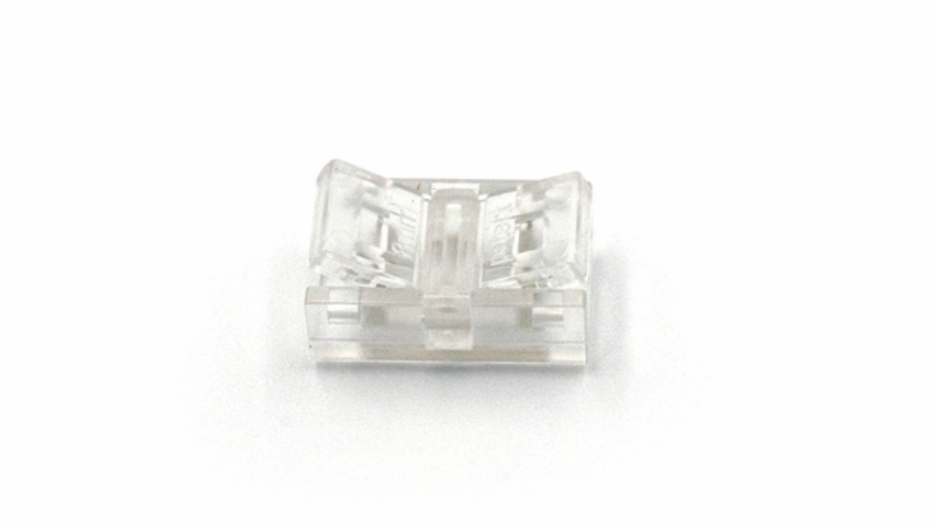 Velikost konektoru umožňuje jeho zasunutí do profilu, zajišťující estetickou instalaci LED pásků.