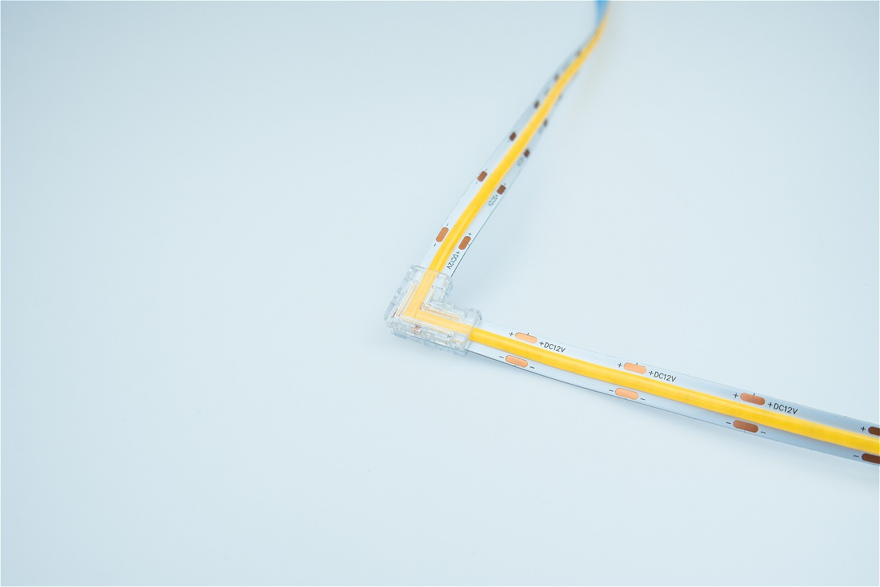 Úhlový konektor umožňuje připojit dva úseky LED pásku v úhlu 90 stupňů.