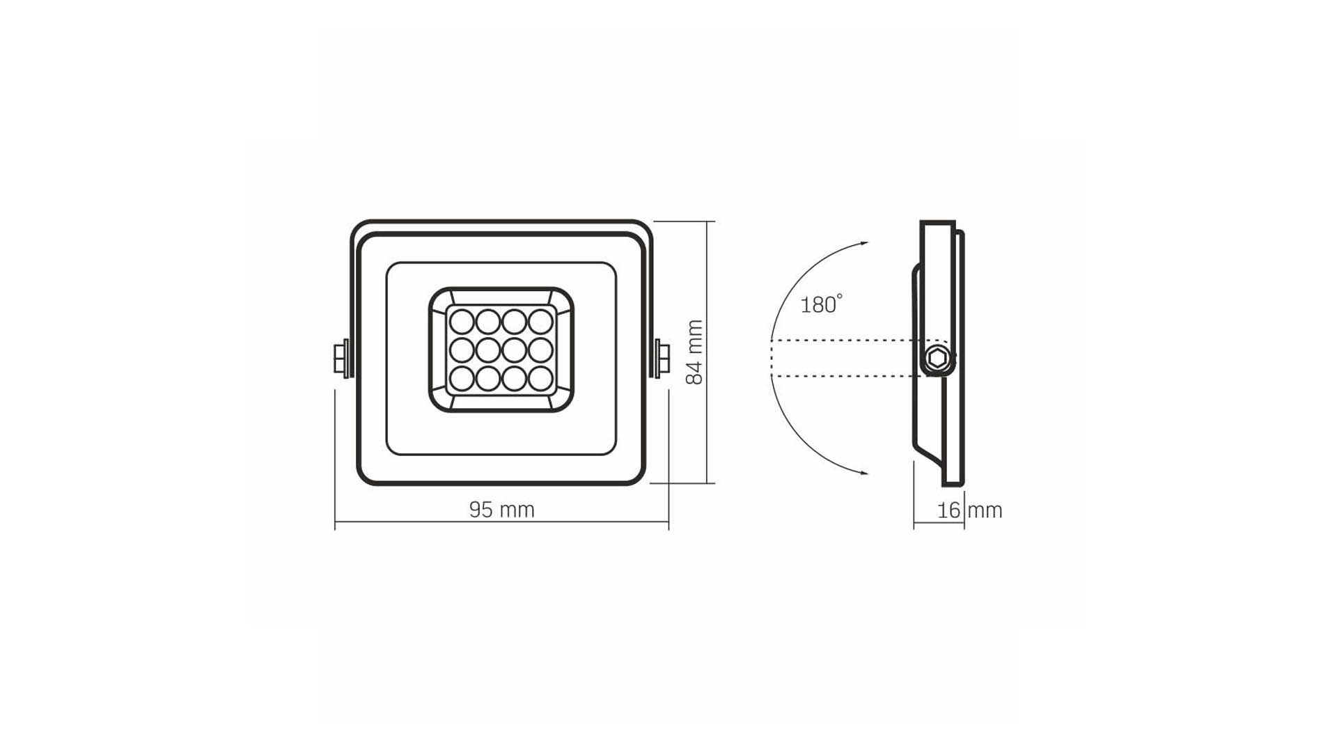 Reflektor LED VIDEX má těsné pouzdro z litého hliníku a difuzor z polykarbonátu. Třída těsnosti IP65 a odolnost proti mechanickým nárazům IK07 umožňují použití reflektoru na místech vystavených povětrnostním podmínkám. Diody LED s barevnou teplotou 5000K vyzařují světlo se střední barvou mezi teplou a studenou bílou.