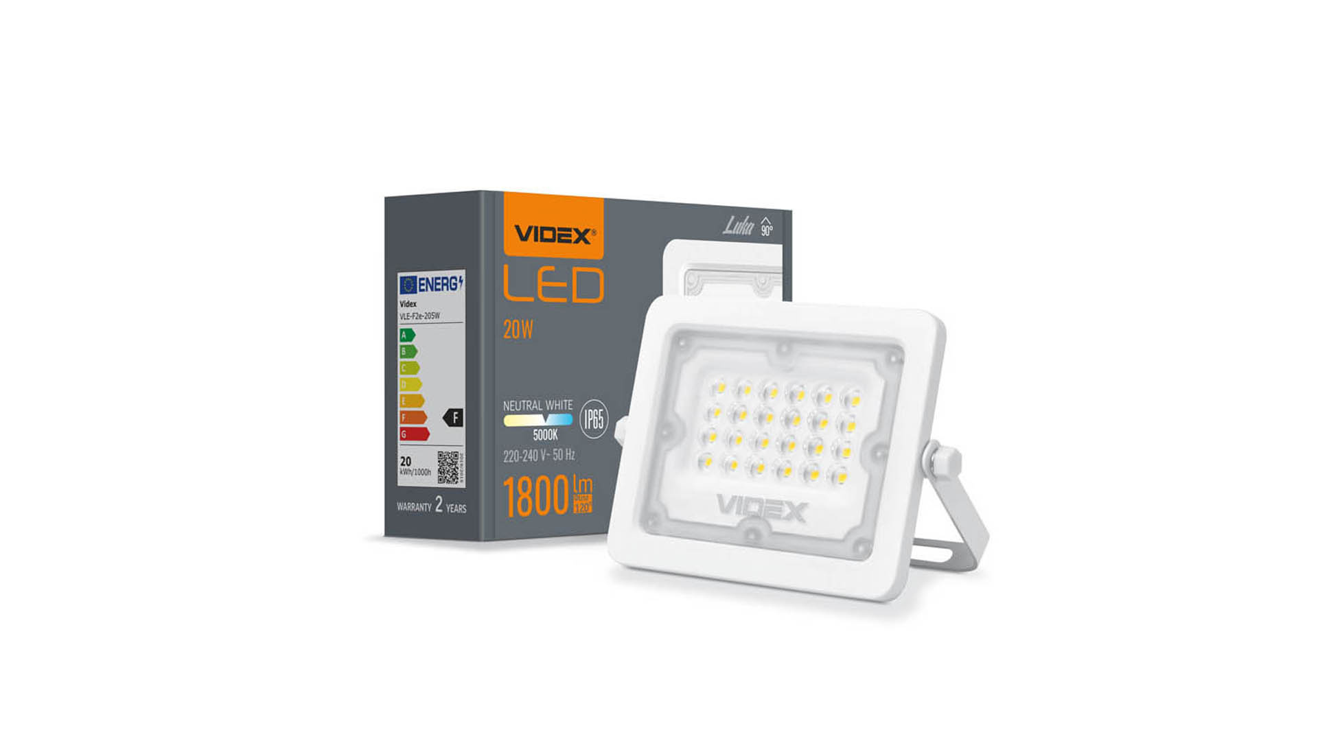 Reflektor LED VIDEX má těsné pouzdro z litého hliníku a polykarbonátový difuzor. Třída těsnosti IP65 a odolnost IK07 proti mechanickým nárazům umožňují použití reflektoru v místech vystavených povětrnostním podmínkám. Diody LED s teplotou chromatičnosti 5000K vyzařují světlo se odstínem mezi teplou a studenou bílou.