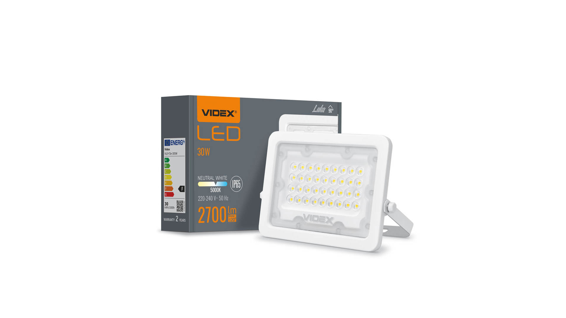 Reflektor LED VIDEX má těsné pouzdro z hliníkového odlitku a difuzor z polykarbonátu. Třída těsnosti IP65 a odolnost vůči mechanickým nárazům IK07 umožňují použití reflektoru na místech vystavených povětrnostním podmínkám. LED diody s barevnou teplotou 5000K vydávají světlo se zabarvením mezi teplou a studenou bílou barvou.