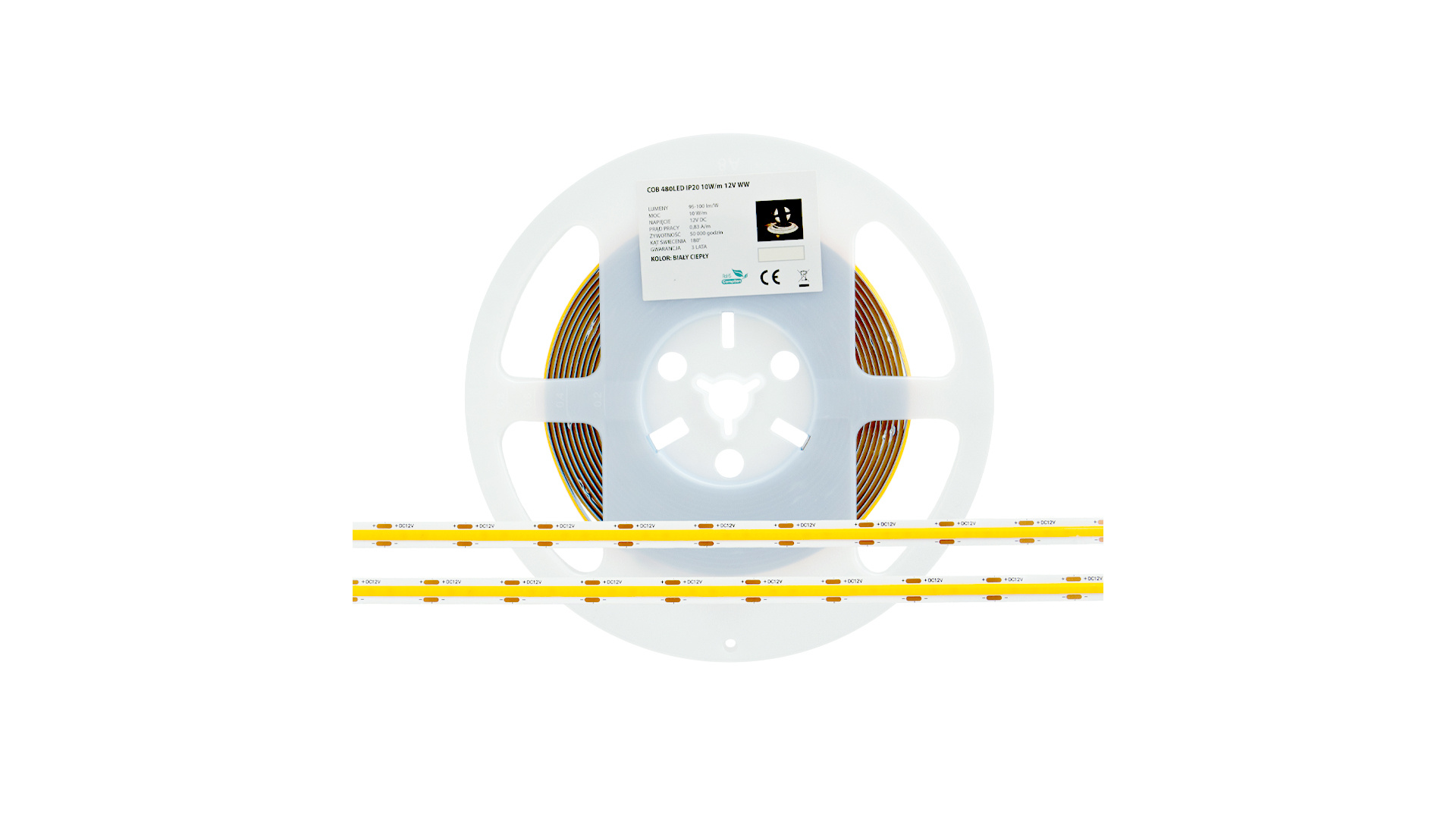 LED pásek 2400 LED 480 LED/m COB 10 W, teplá bílá