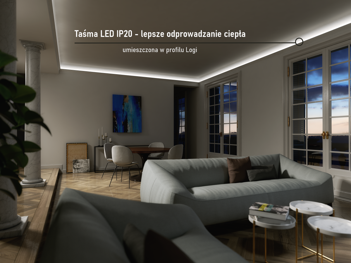 Pásy s hodnocením IP20 jsou doporučeny pro použití v oblastech, kde není vlhkost a vysoké znečištění. Absence silikonového stínění, které se nachází v pásech IP65, způsobuje, že pás lépe odvádí teplo, což prodlužuje jeho životnost.