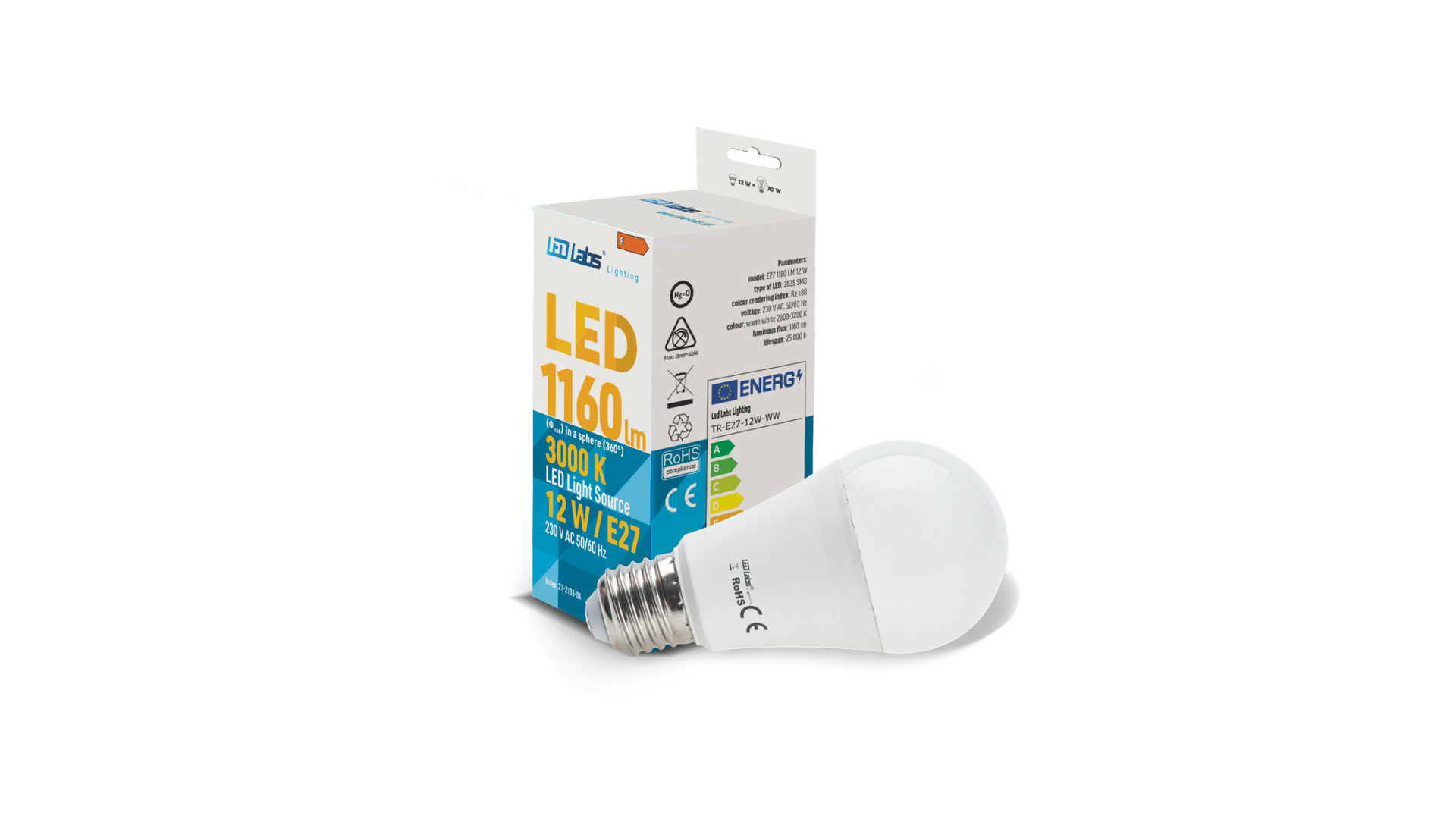 Žárovka E27 LED vyrobená z 2835 SMD diod s výkonem 12W a světelným tokem 1160 lumenů v teplé bílé barvě. Náhrada za tradiční žárovku 70W. Závit E27 je jedním z nejčastěji používaných závitů, a to z důvodu jednoduchosti při demontáži/instalaci žárovek.
