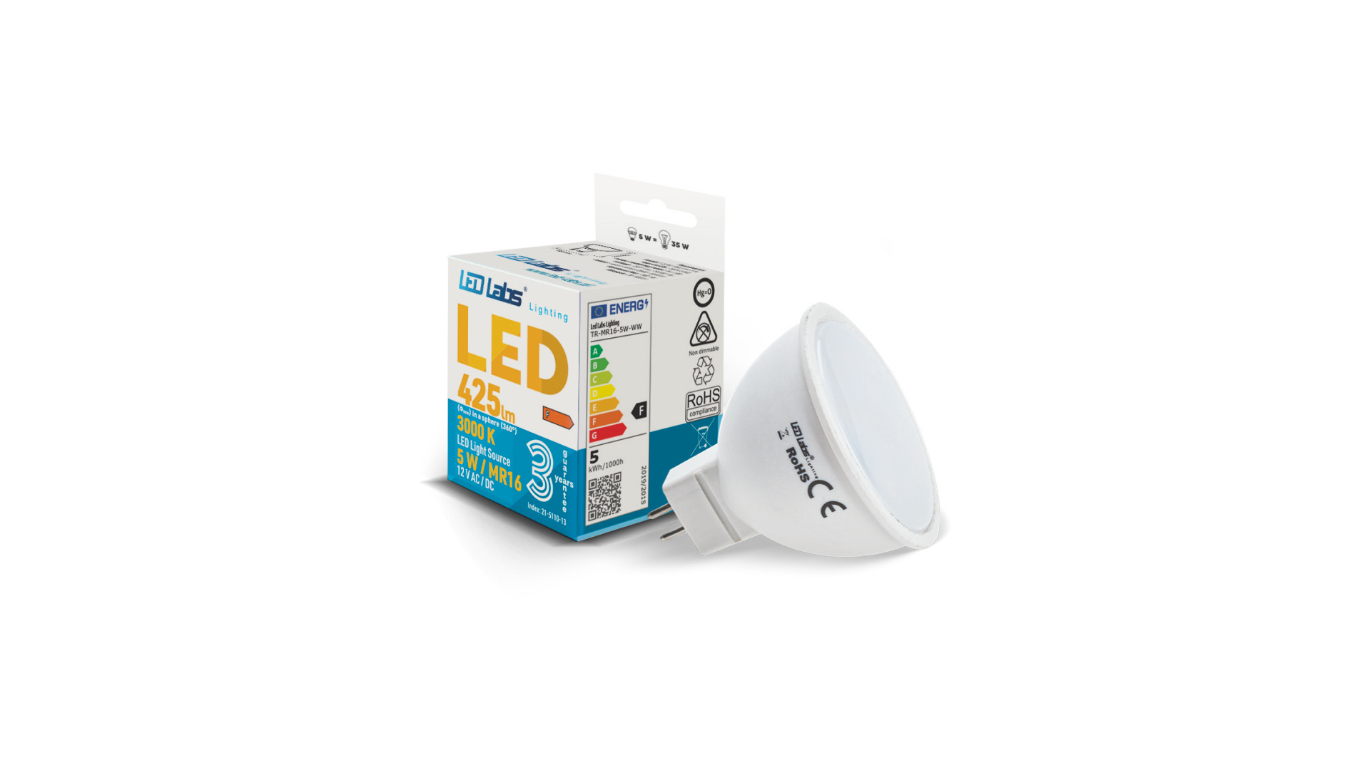 Žárovka LED MR16 vyrobená z SMD LED 2835 5W teplé bílé barvy je výrobek speciálně připravený pro vás naší společností LED Labs.