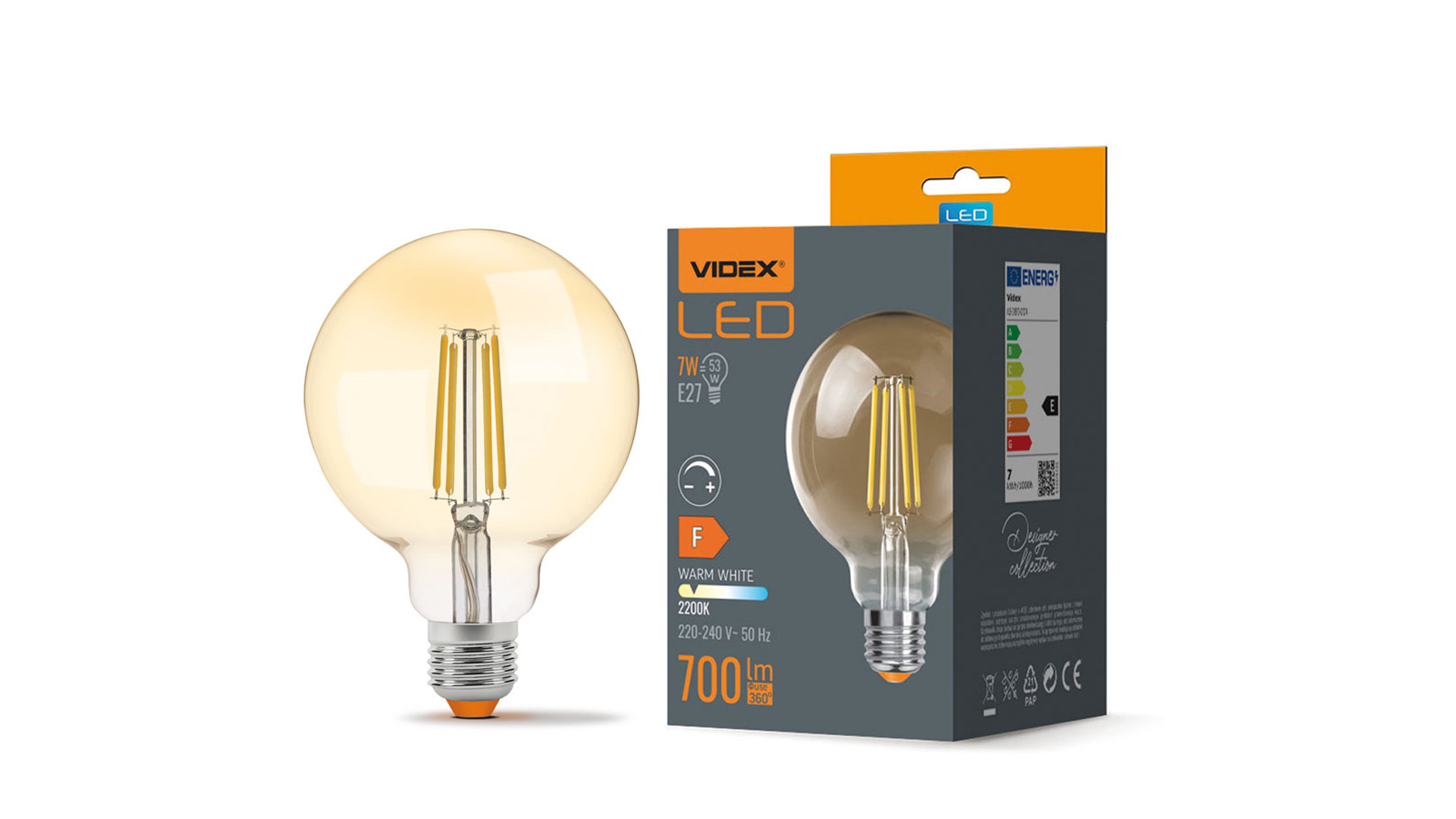 Žárovka s paticí E27 s výkonem 7 W a světelným tokem 700 lumenů v teplé bílé barvě. Náhrada za tradiční 53W žárovku. LED žárovky poskytují světlo bez blikavého efektu, který unavuje oči.