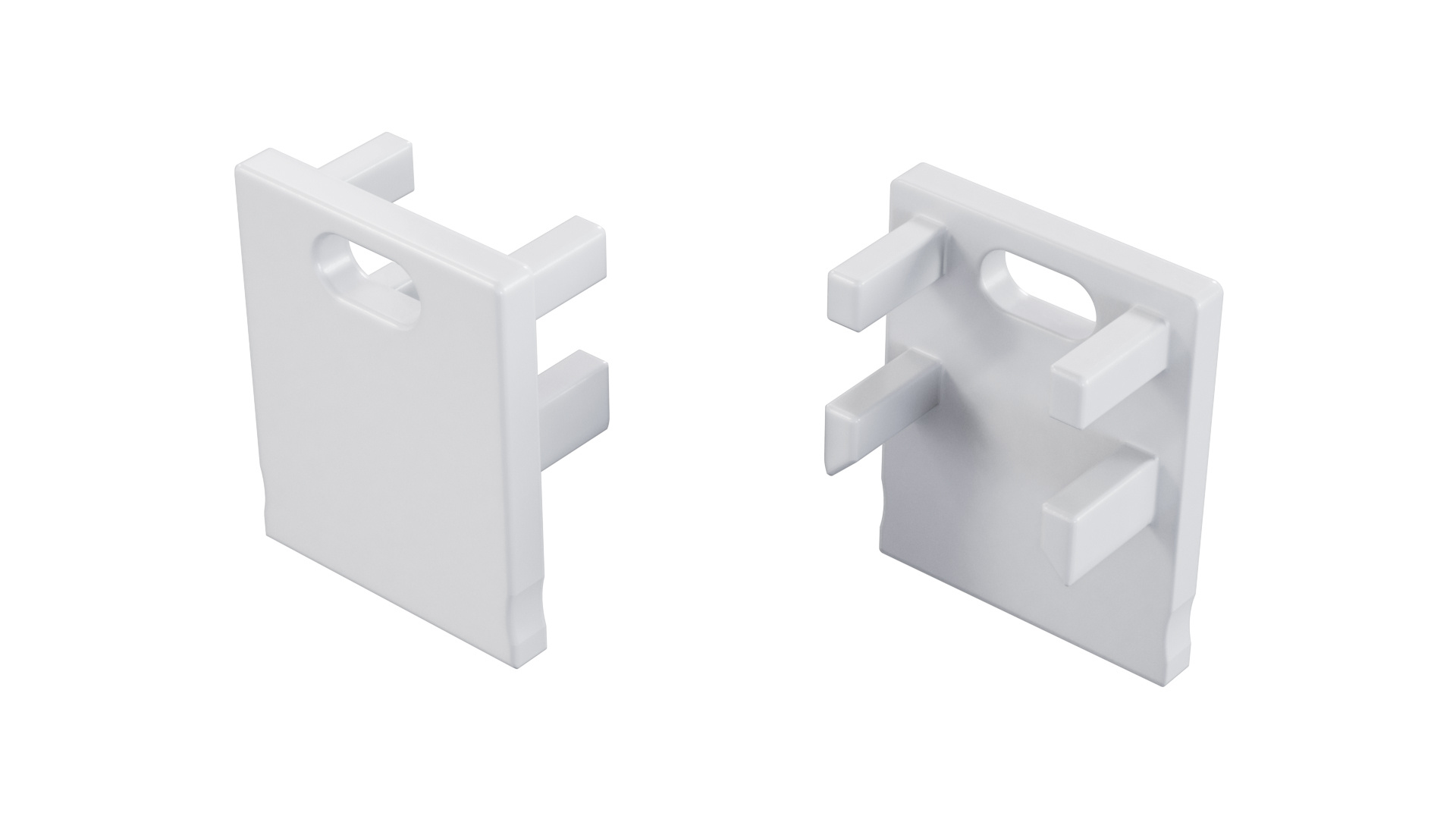 - Koncové krytky s otvorem (plast): bílá, černá, stříbrná, šedá