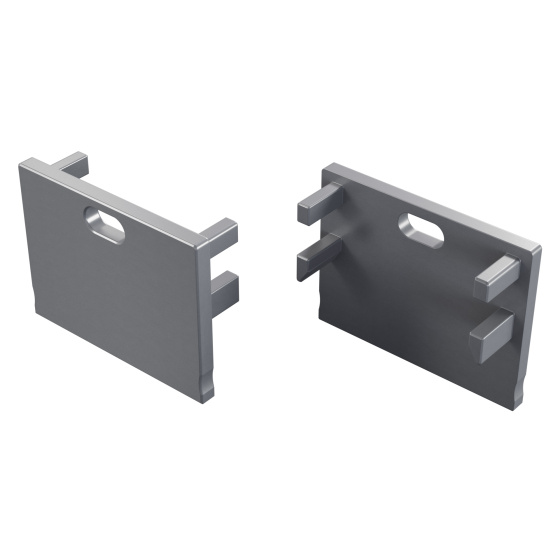 Koncová krytka LUMINES ALU, stříbrně eloxovaná s otvorem.