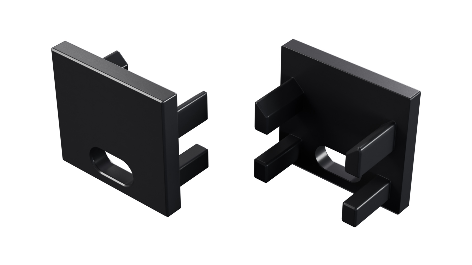 - Koncové kryty s otvorem (hliník): bílá, černá, stříbrná, surová