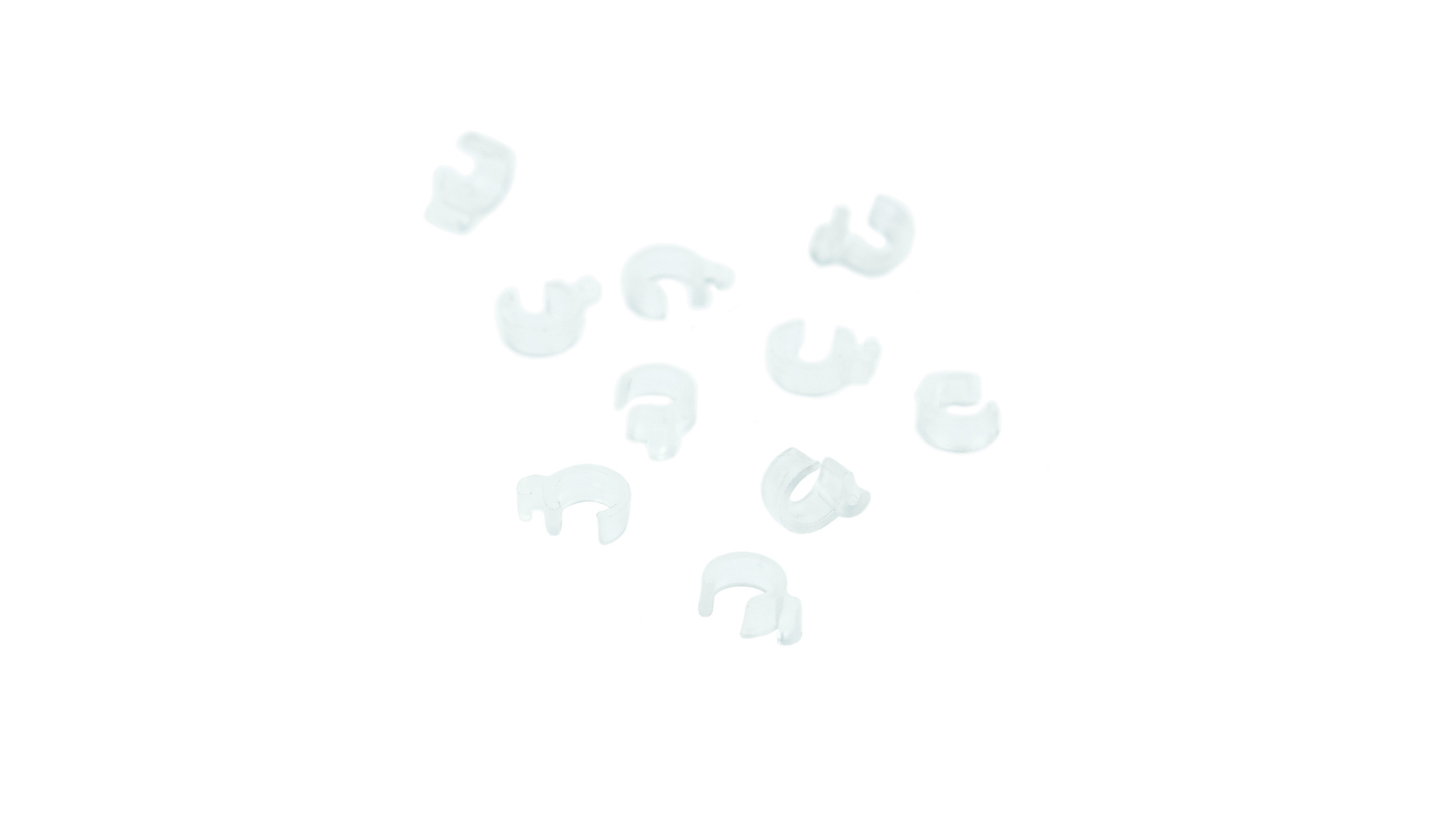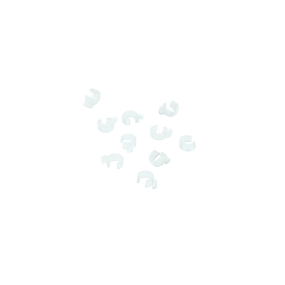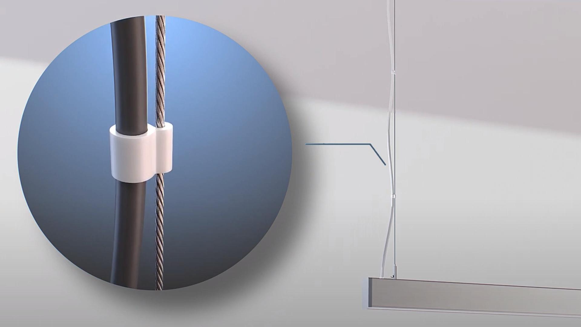 Držák Vám umožňuje připojit napájecí kabel k montáži (max. průřez 5 mm) společně s kabelem ze sady pro zavěšení LUMINES. Díky použití několika držáků vypadá kabeláž esteticky příjemně. Držáky se prodávají v sadách po 10 kusech.