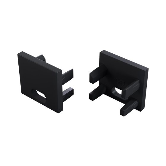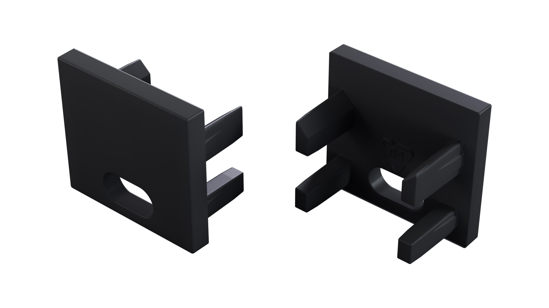 - Koncové kryty s otvorem (hliník): bílá, černá, stříbrná, surová