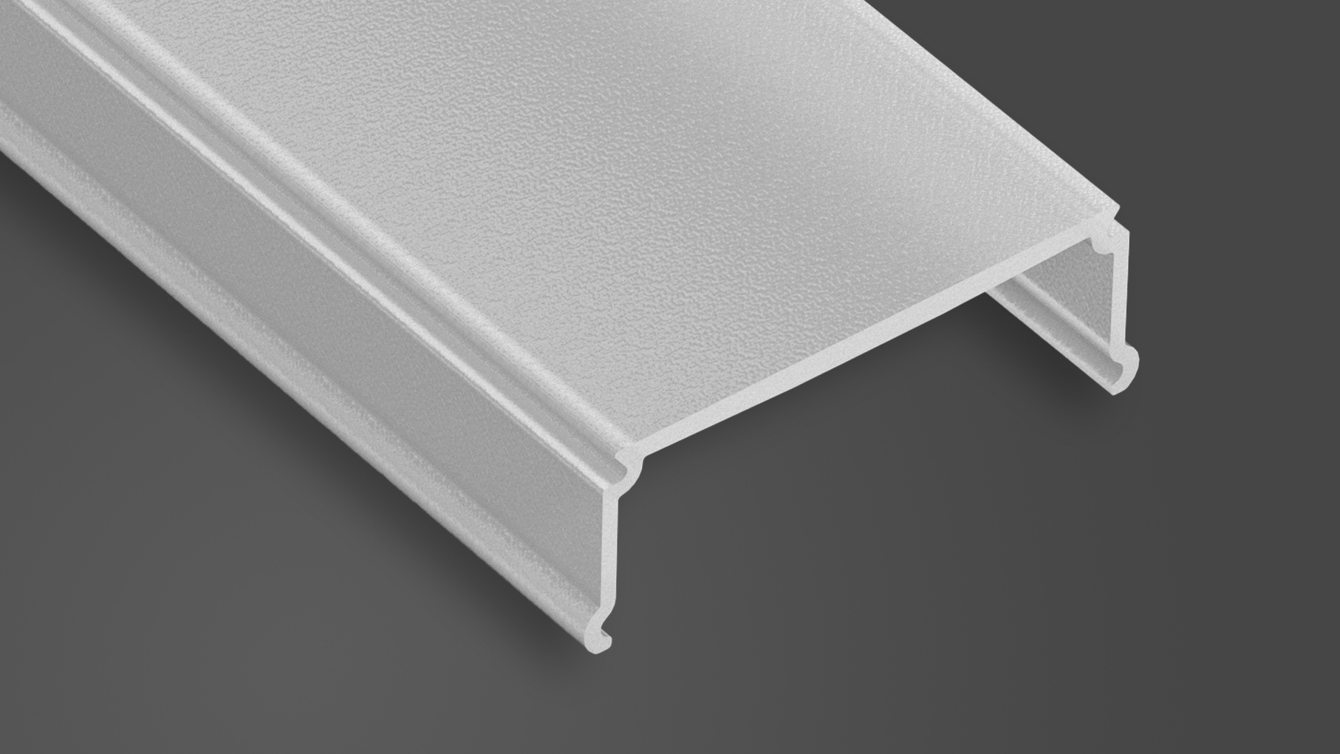 The LIFT ONE cover for the DURO profile is a flat diffuser made of plastic. Its design allows height adjustment in three levels, enabling it to be adapted to the thickness of the plaster or finishing coat and ensuring precise alignment of the cover surface with the ceiling or wall plane.