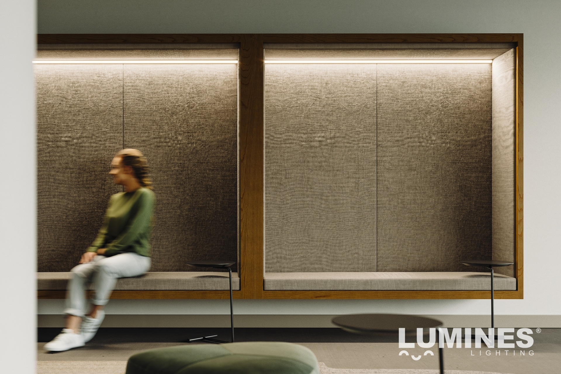 The LUMINES AGO aluminum profile is intended for surface mounting where the light beam must be directed at a 45° angle.
