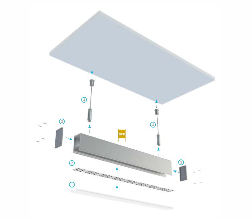 Lumines CLARO je povrchově montovaný profil – pro osvětlení domácností a kanceláří – používaný jako závěsné svítidlo s ukrytým napájením.