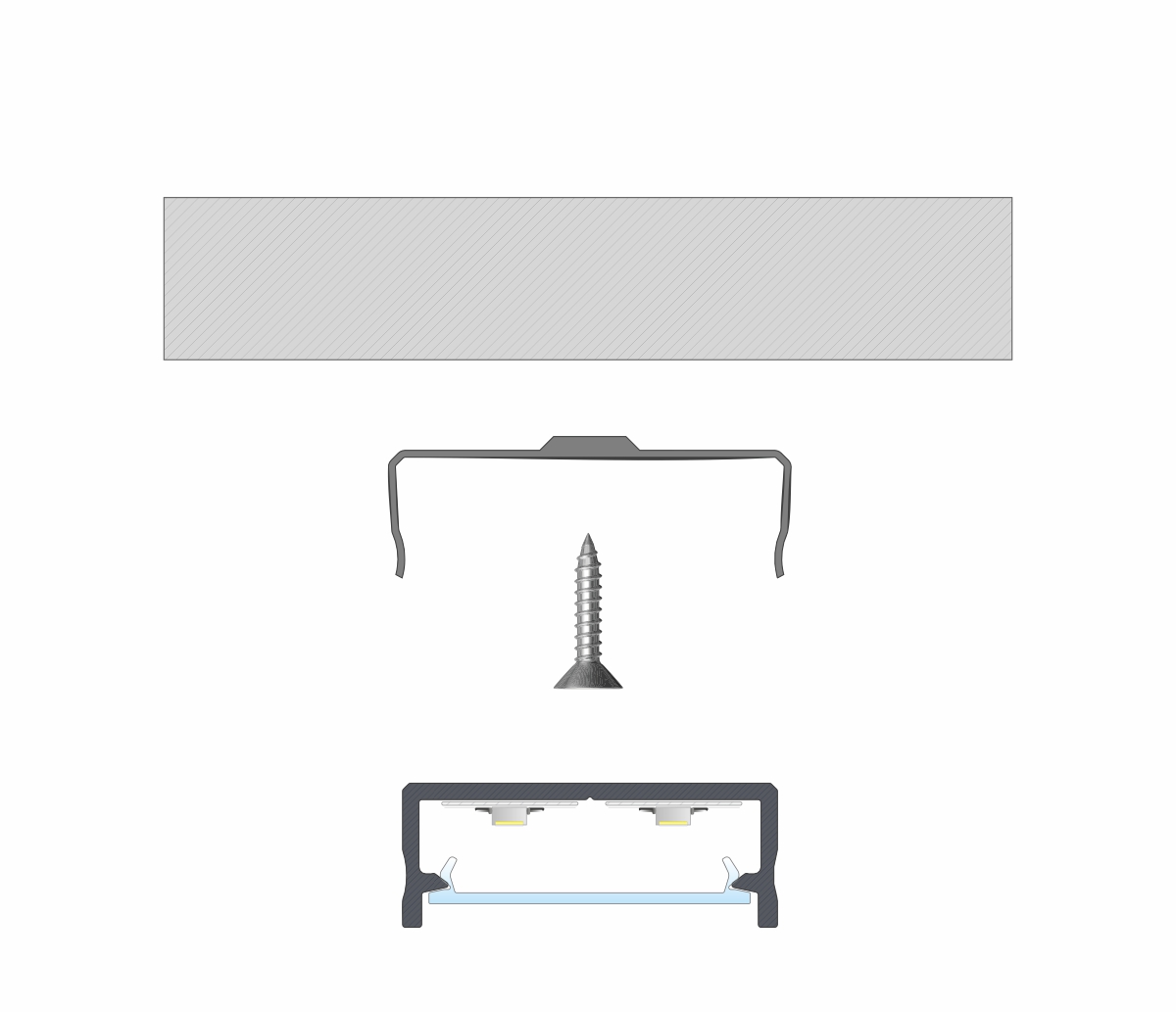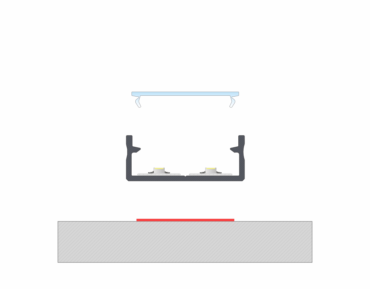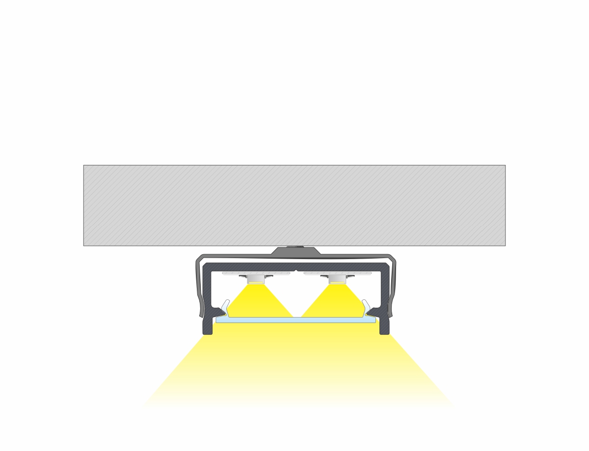 Výsledek instalace profilu DUAL s krytem DOUBLE pomocí montážní sponky