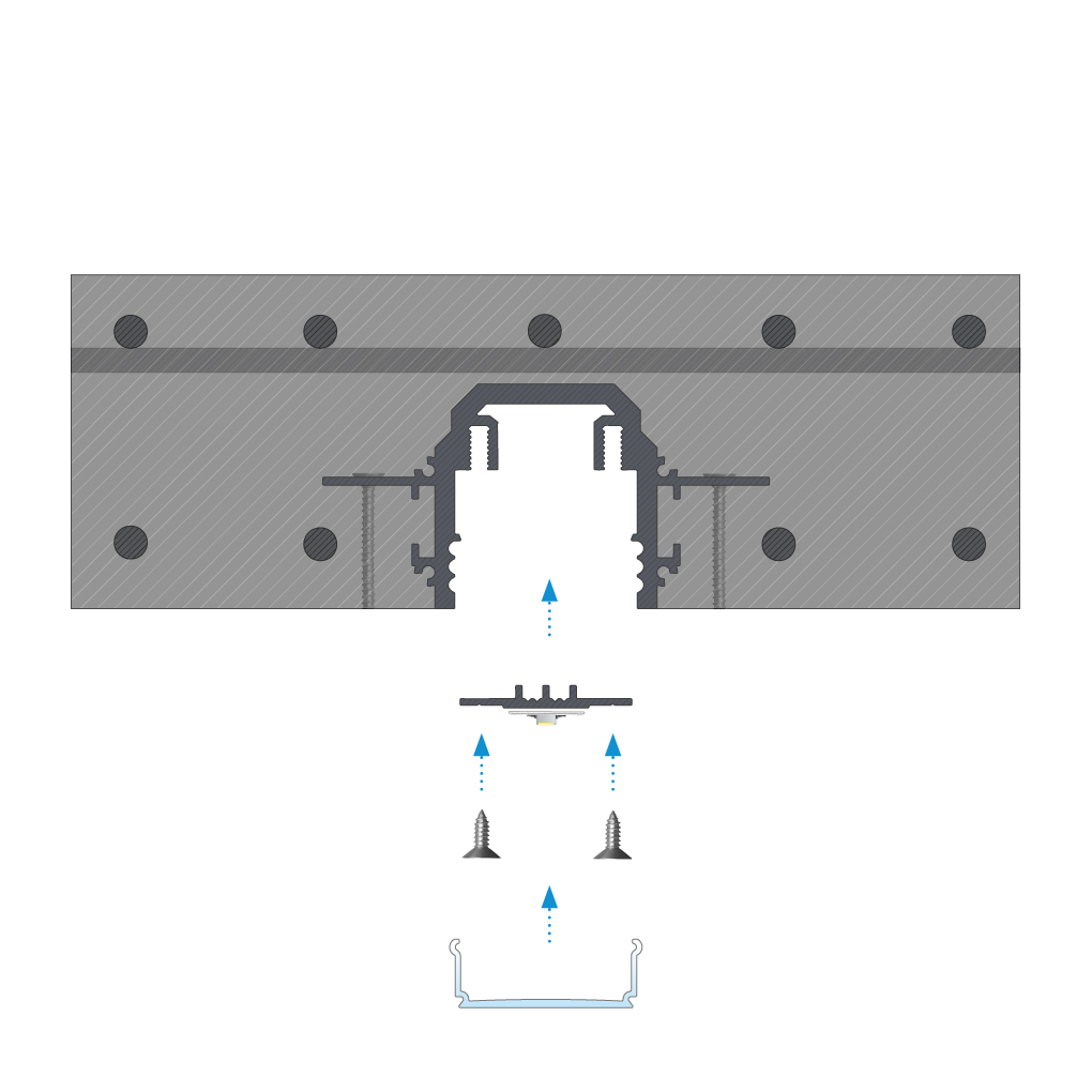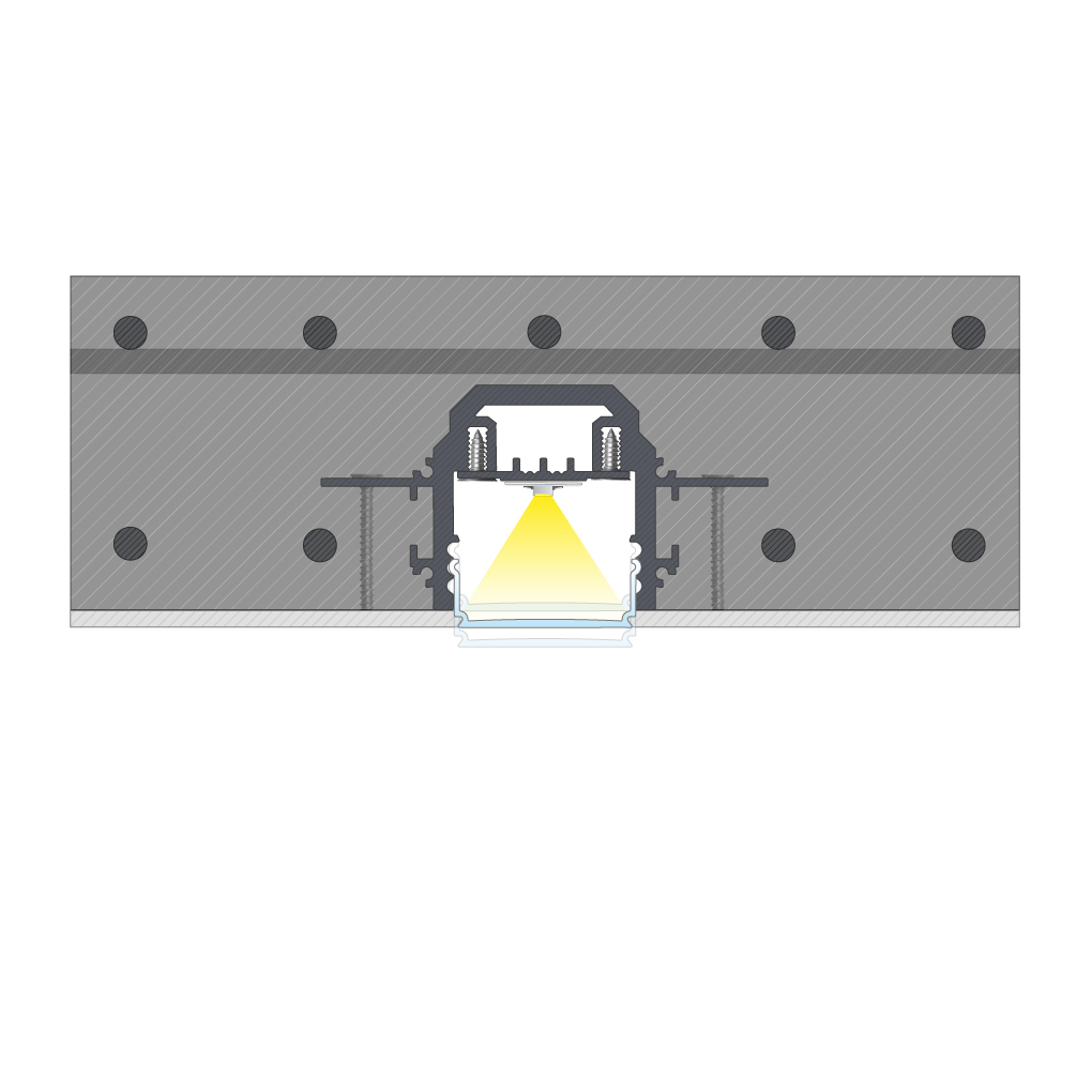The DURO M1 mounting profile serves as an auxiliary element for installing LED lighting in the DURO profile, designed for installation in concrete using the pouring method. The maximum LED strip width is 12 mm.