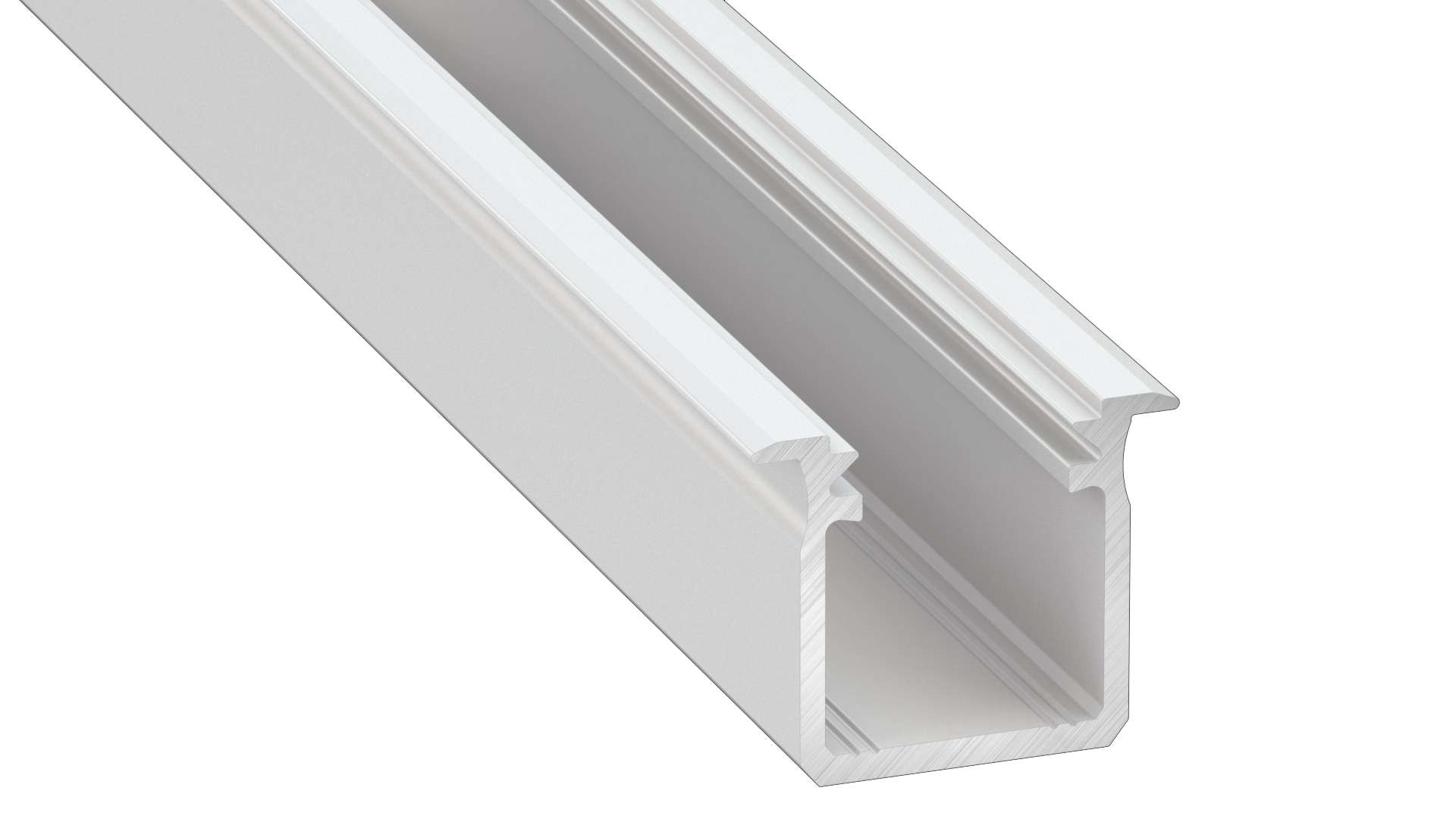 Profil typu G Lumines se zapuštěnou montáží. Určený pro osvětlení kuchyní a obchodů. Vhodný pro montáž uvnitř skříní, na pracovní desky a schody.