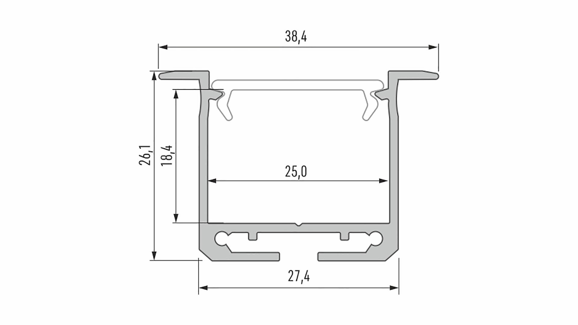 Lumines inDILEDA je zapuštěný architektonický profil. Ideální pro liniové osvětlení se dvěma LED pásky. Navrženo pro použití v kancelářských prostorech a průmyslových zařízeních.