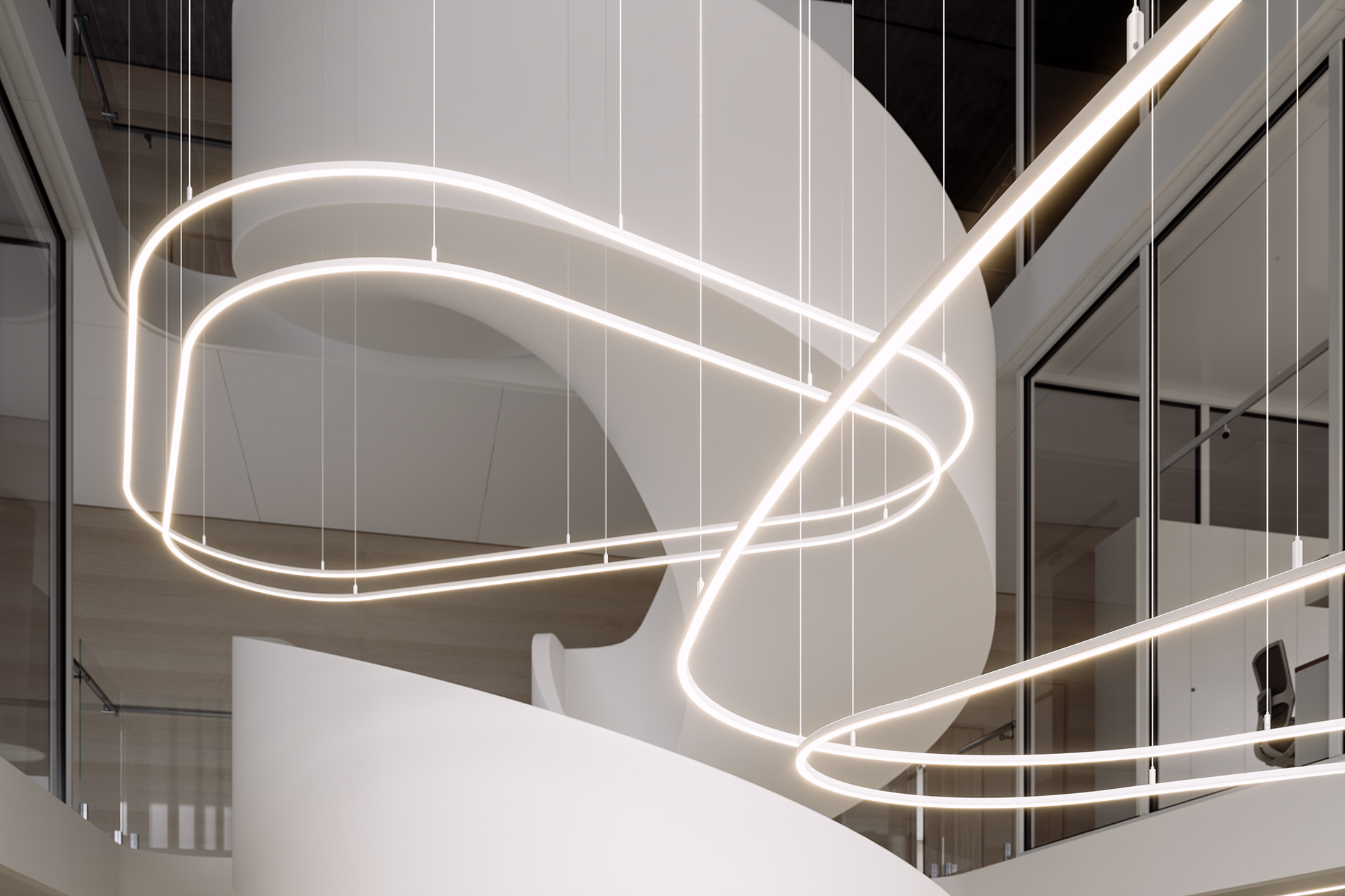 Recessed version of the FLEXA system. It allows you to create smooth, continuous lines of light, flush with the surface of the ceiling or wall, including curved sections. The system supports connectors, allowing you to create complex Lighting arrangements, and works particularly well in light arches in walls and on columns.