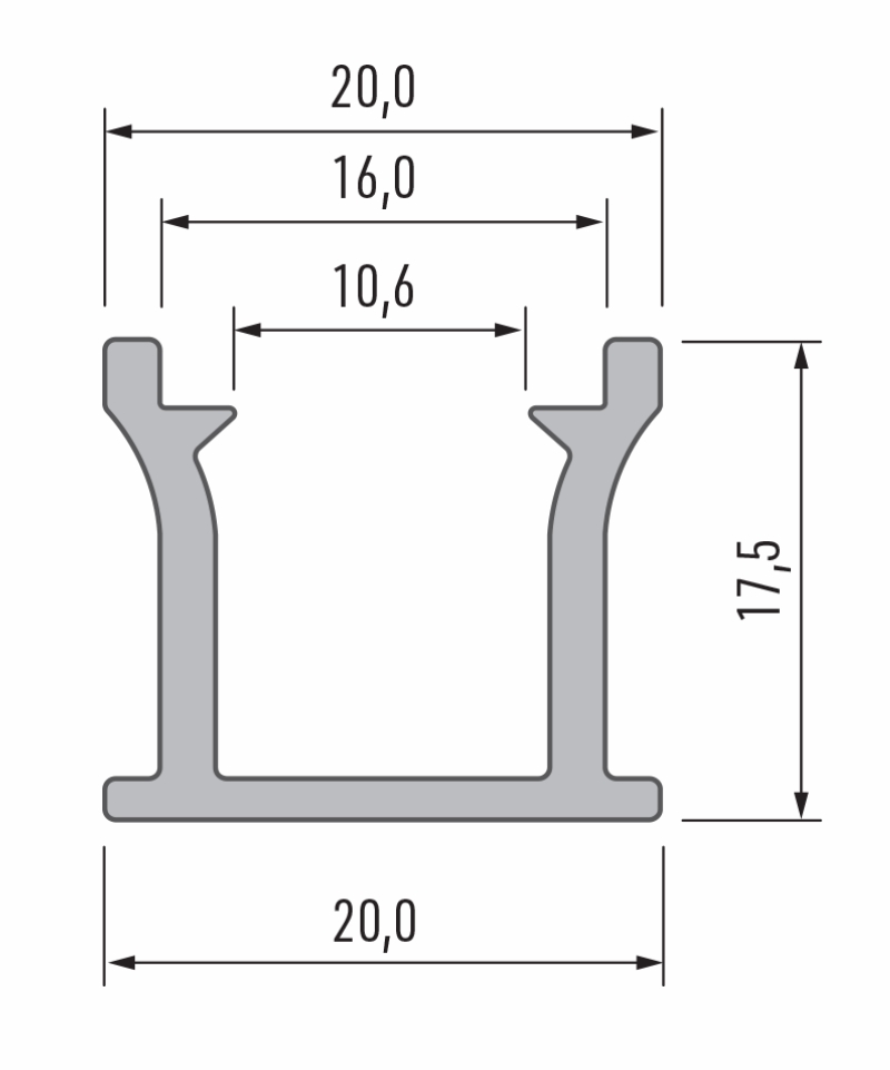 Profil je k dispozici ve standardních délkách: 1000 mm, 2020 mm, 3000 mm.