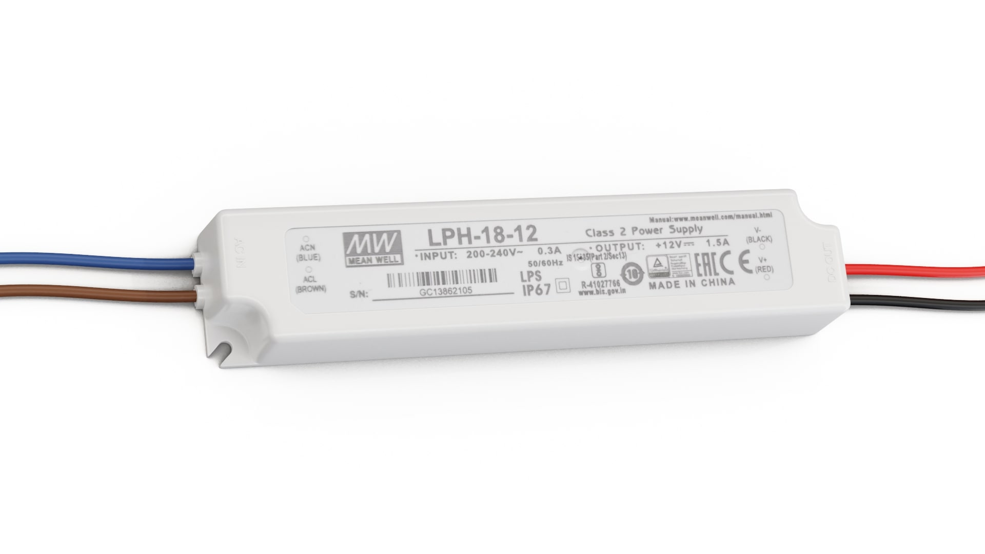 Značka MEAN WELL jsou spínané napájecí zdroje navržené pro napájení LED pásků a světelných zdrojů 12V a 24V. Vyznačují se malými rozměry, nízkou hmotností a díky montážním otvorům jsou jednoduché na instalaci. Výrobky lze použít v místnostech se zvýšeným rizikem vlhkosti díky krytí IP67.