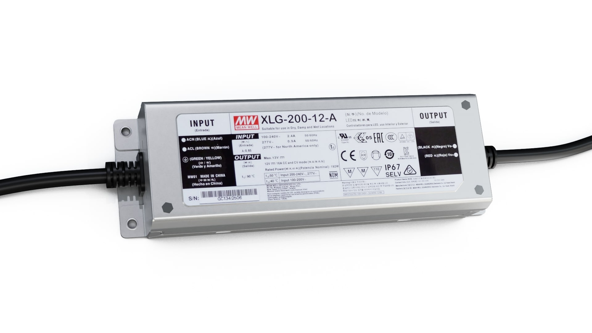Značka MEAN WELL jsou spínané napájecí zdroje navržené pro napájení LED pásků a světelných zdrojů 12V a 24V. Vyznačují se malými rozměry, nízkou hmotností a díky montážním otvorům jsou jednoduché na instalaci. Výrobky lze použít v místnostech se zvýšeným rizikem vlhkosti díky krytí IP67.