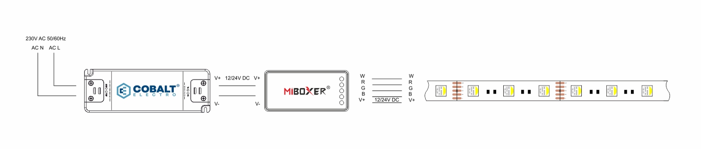Přijímač umožňuje ovládání RGB+W LED pásku. Přijímač lze připojit k dálkovému ovládání řady MiBOXER nebo po spárování s Wi-Fi bránou lze možnosti přijímače rozšířit o ovládání pomocí aplikace nebo hlasem.