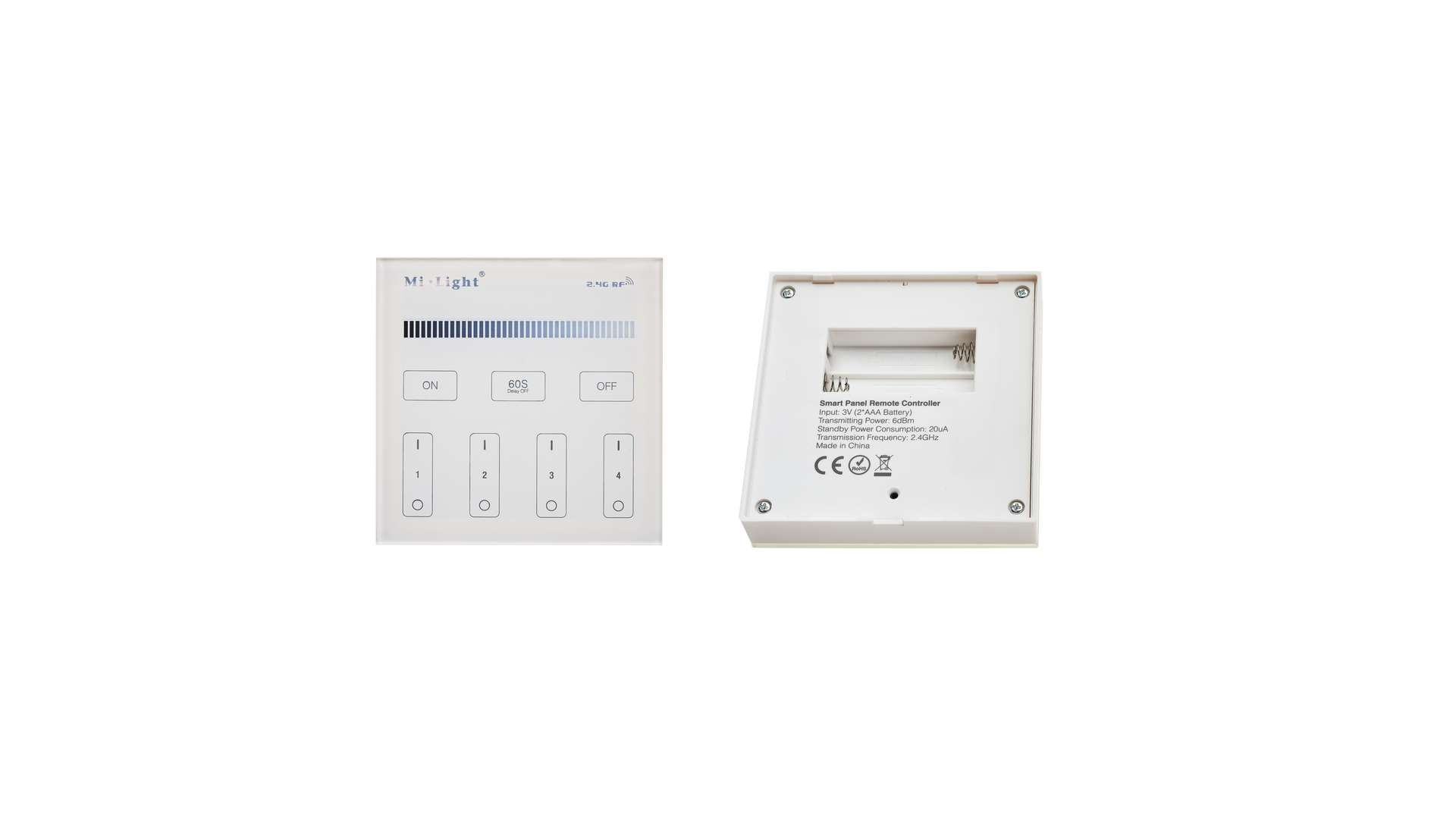 Jedná se o elegantní alternativu k vypínači na stěně, který lze připevnit na libovolném místě pomocí oboustranné lepicí pásky nebo šroubu, je napájen dvěma bateriemi AAA, takže není zapotřebí zdroj napájení. Lze jej namontovat kdykoliv bez ohledu na to, zda byl předtím již namontován dálkový ovladač MiBOXER MONO, obě zařízení mohou ovládat stejné přijímače.