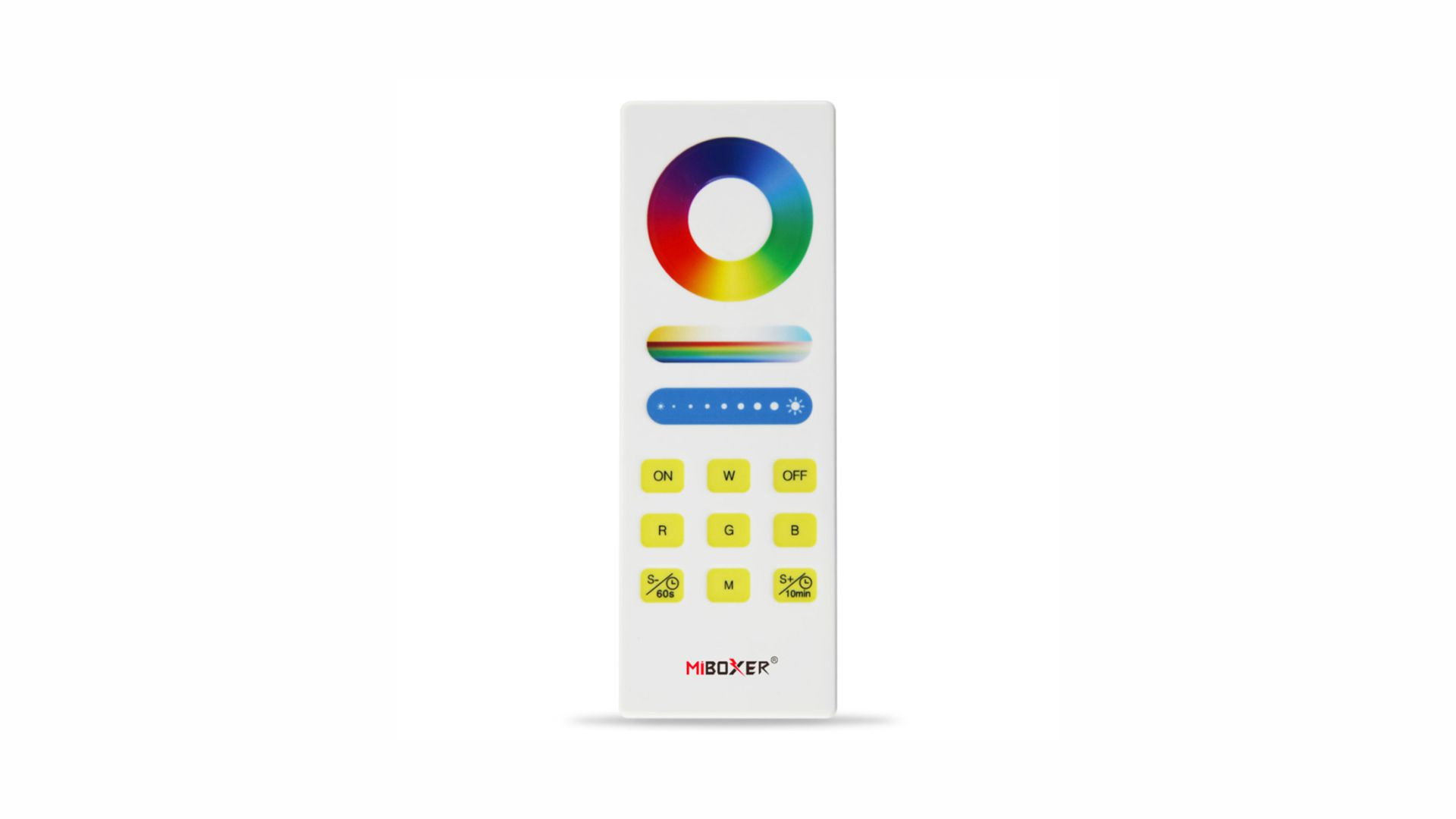 Dálkové ovládání RGB+CCT pásku vám umožňuje ovládat RGB+CCT LED pásek. Na dálkovém ovládání můžete specifikovat 4 nezávislé zóny a libovolný počet přijímačů řady MiBoxer může být přiřazen ke každé zóně (prodávají se samostatně). Možnosti konfigurace jsou téměř neomezené.