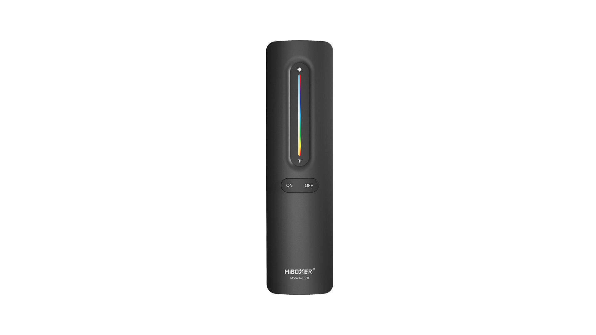 MiBOXER C4 controller enables remote control of brightness, color temperature, and RGB colors of LED lighting. It operates on RF 2.4 GHz wireless technology, ensuring a stable connection with MiBoxer/Mi-Light receivers and luminaires within a range of up to 30 metres.