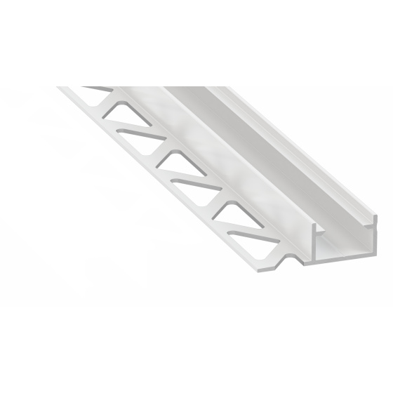 Hraniční profil (koncový) určený pro obklady, lepený pod keramickou dlažbu, perforovaný s krytem třídy těsnosti IP54. Pro použití jako doplňkové osvětlení.