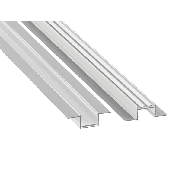 Zapuštěný LED profil určený k zabudování do omítky. Poskytuje rovnoměrnější linii světla díky hlubšímu uložení LED pásků.