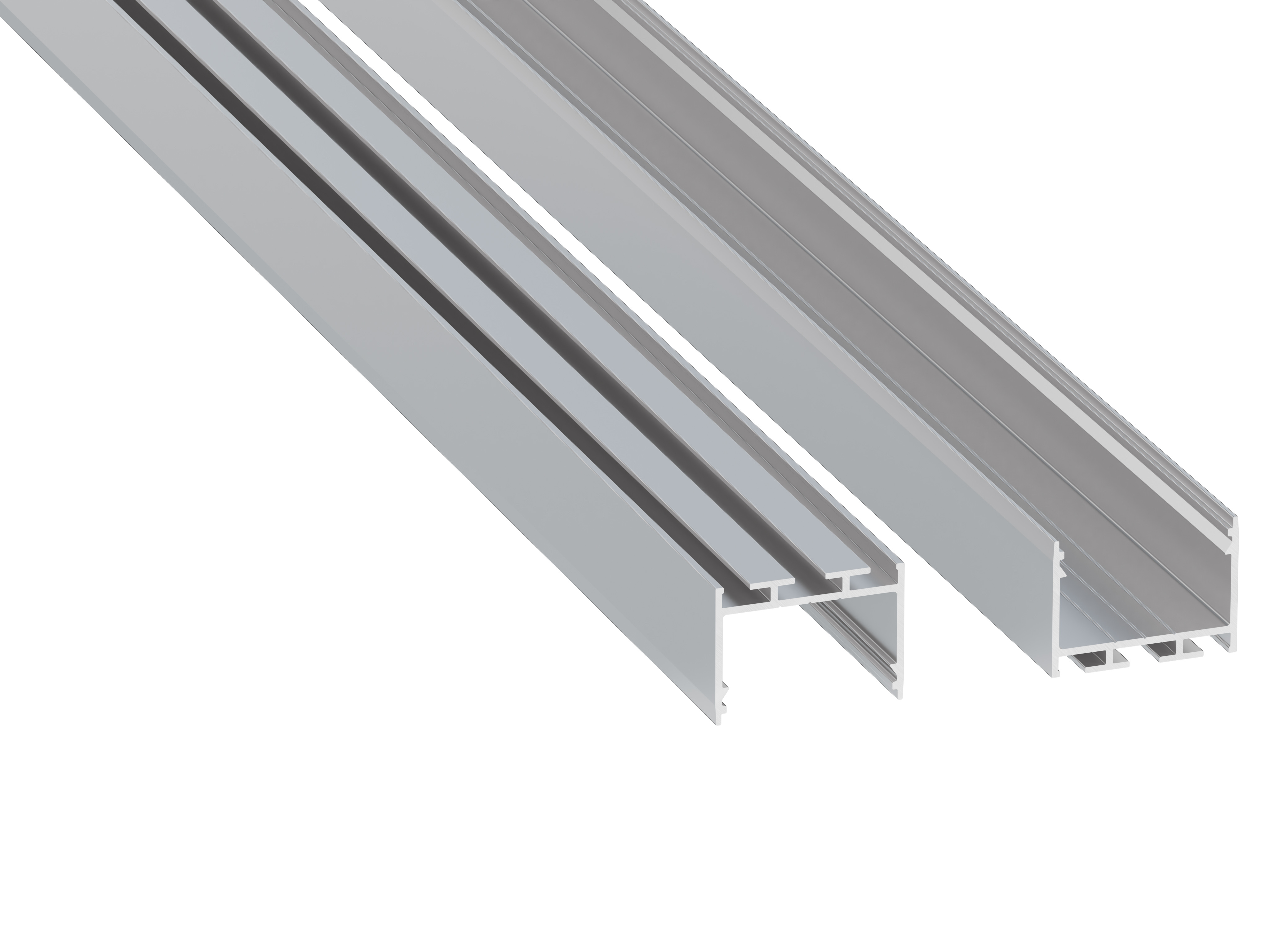 Povrchový nebo visící LED profil navržený pro podsvícení, poskytuje rovnoměrnější linii světla díky hlubšímu umístění LED pásku. Použití rovných a úhlových konektorů vám umožní vytvořit jedinečné světelné struktury.