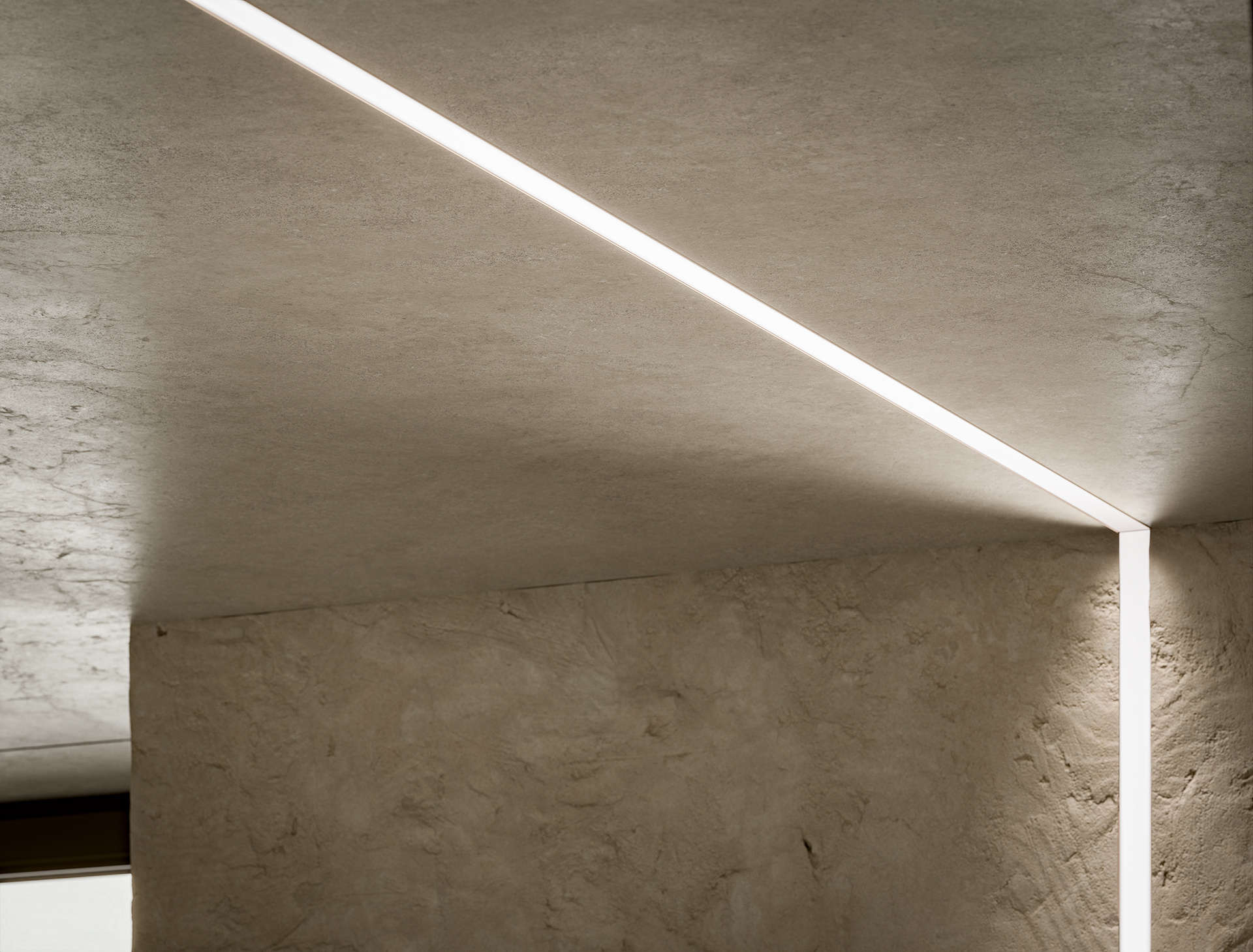 Zapuštěný LED profil určený k zabudování do omítky. Poskytuje rovnoměrnější linii světla díky hlubšímu uložení LED pásků.