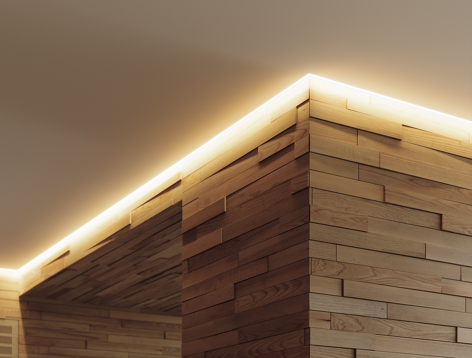 Stropní a nástěnný profil pro sádrokartónové práce. Pro použití jako akcentní osvětlení s jedním LED pásek.